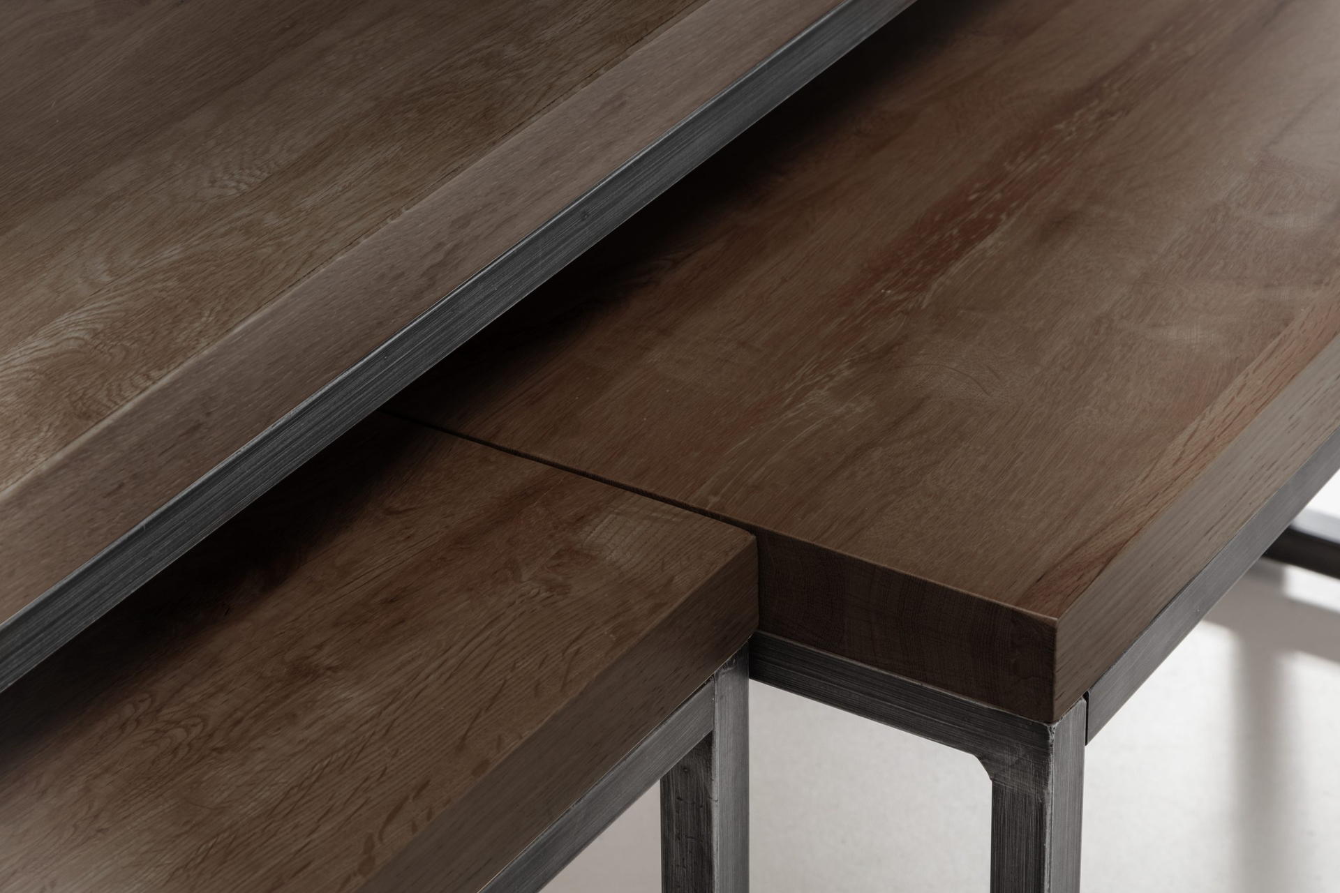Made from solid oak, these nesting coffee tables offer a rustic dark oak finish emphasising the stunning natural wood grain. The Brooklyn Nesting Coffee Tables offer a vintage edge featuring industrial style metal legs. These Coffee Tables can be stored away under each other when not in use, creating a space saving solution perfect for a wide range of modern decor. Part of the Julian Bowen Brooklyn Dining and Occasional Collection.