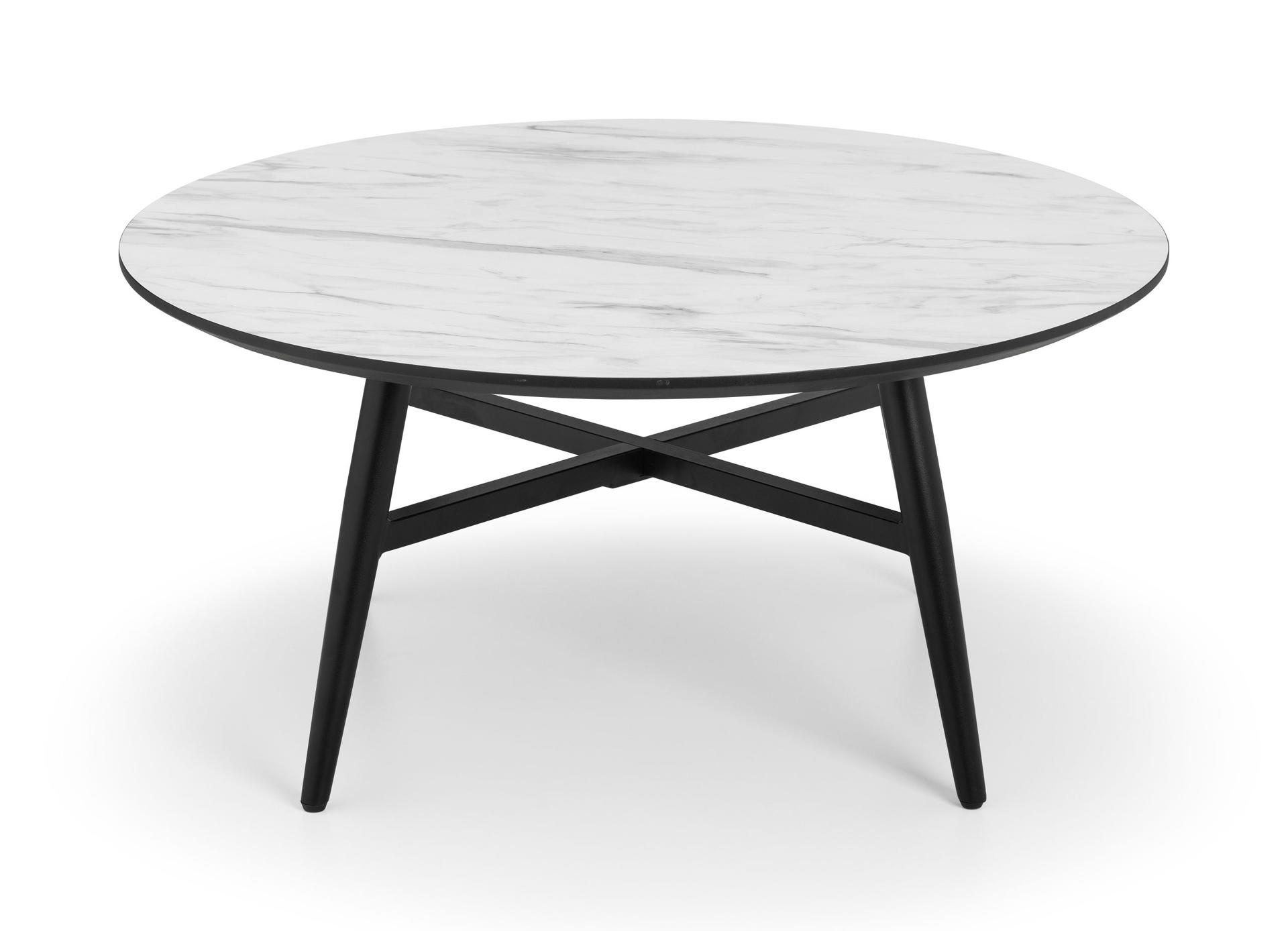 With cool, monochrome tones, the Firenze coffee table offers a contemporary, timeless design that adds charm and style to any room. Crafted from MDF and Powder Coated Steel, this sturdy round coffee table is topped with a white marble effect and black finished cross legs, adding an impressive centrepiece to your living space