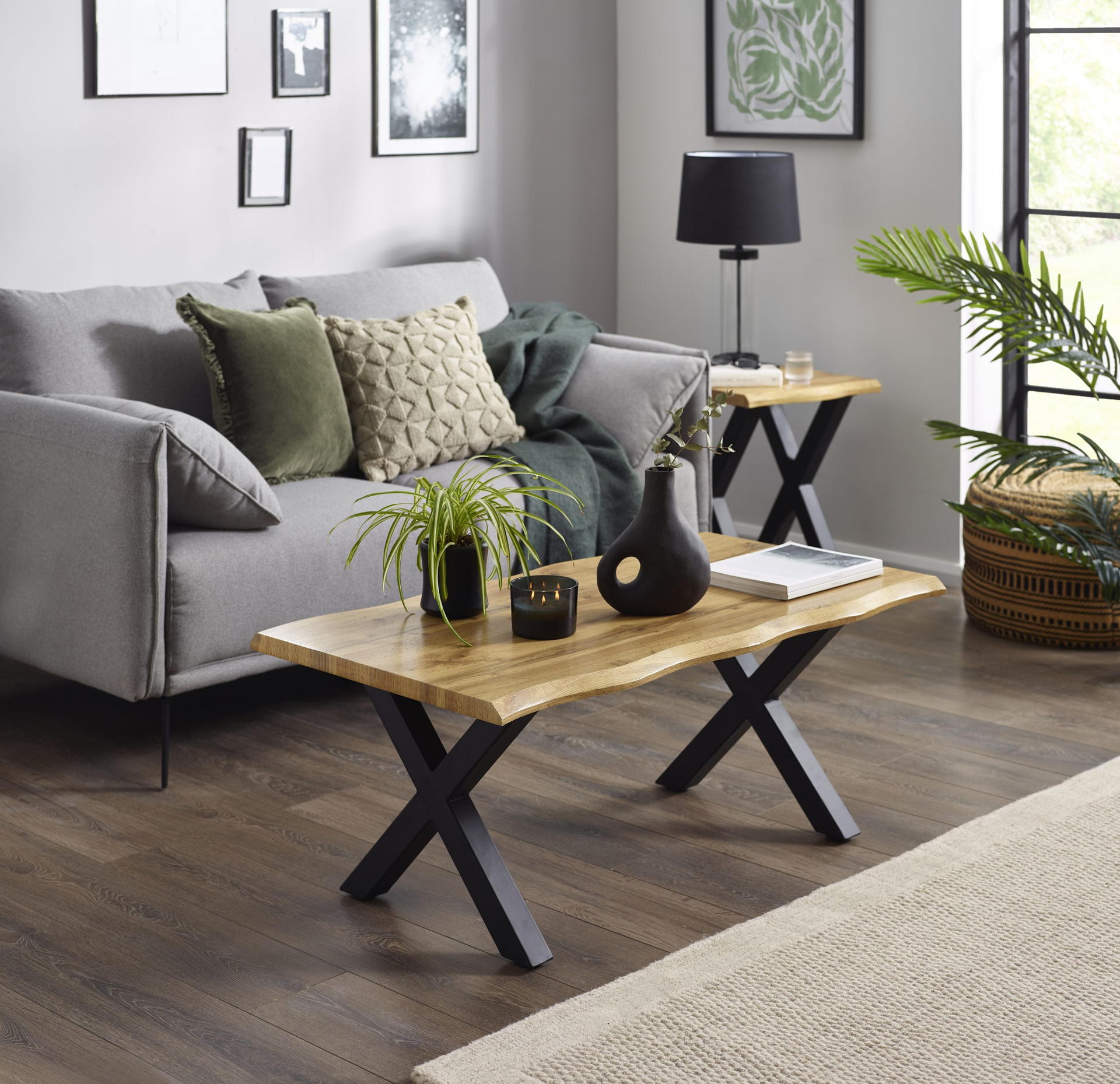 Refresh your living space with the Harvey Coffee Table, a piece that’s both stylish and functional. The oak-effect top is designed with a beautifully detailed waved edge, while the bold matt black steel crossed legs create a striking modern look. Perfect for hosting drinks, snacks, or displaying your favorite decor, this coffee table is a standout centerpiece for any living room. Minimal assembly is required, making it easy to set up and enjoy.