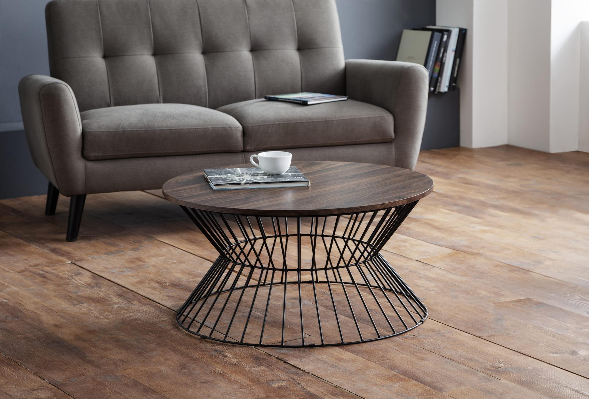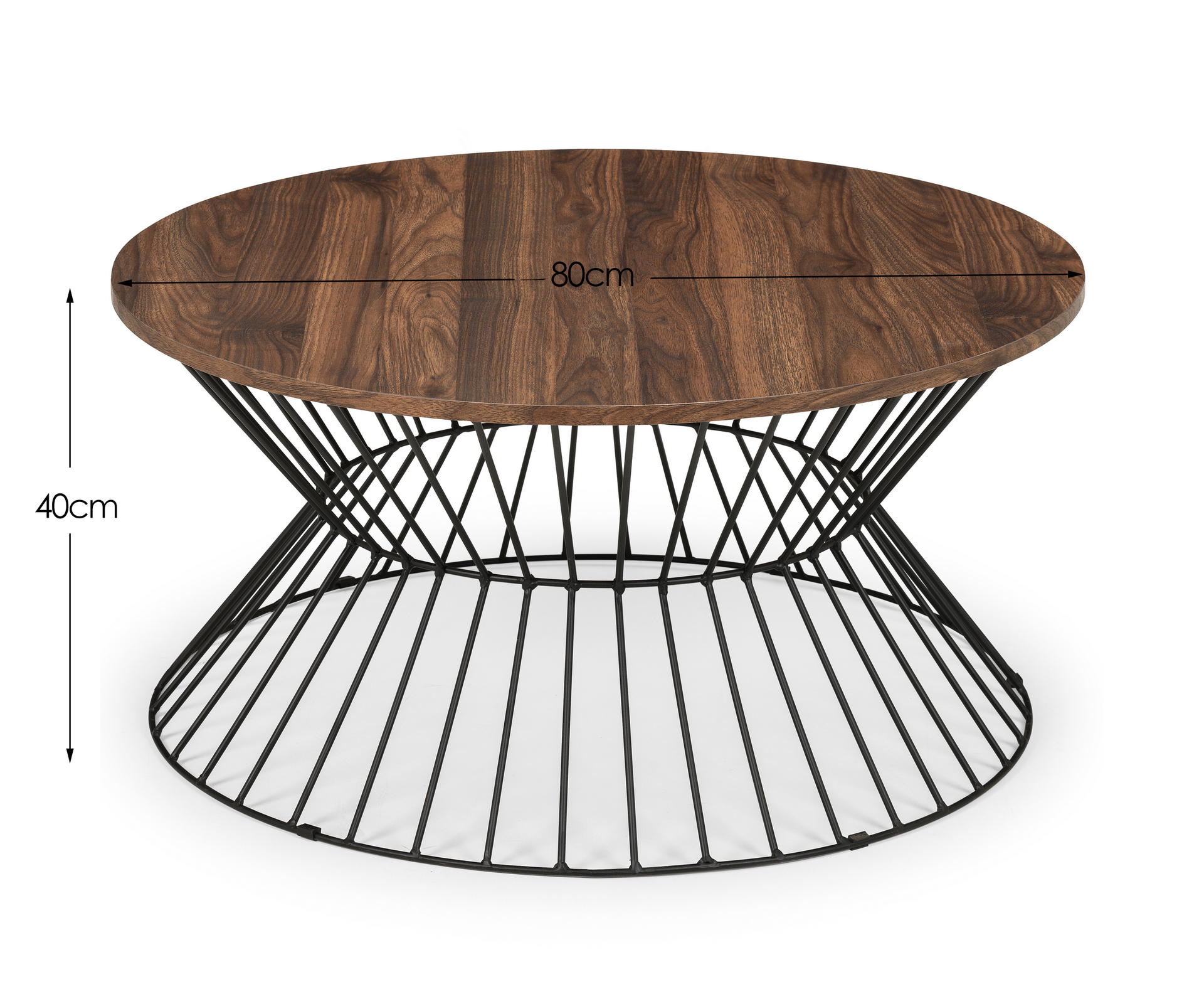 The Jersey Coffee Table will add a contemporary addition to any living area. Featuring a black wire frame with a fixed round walnut effect top, this coffee table creates a striking industrial feel with a classic contrast.