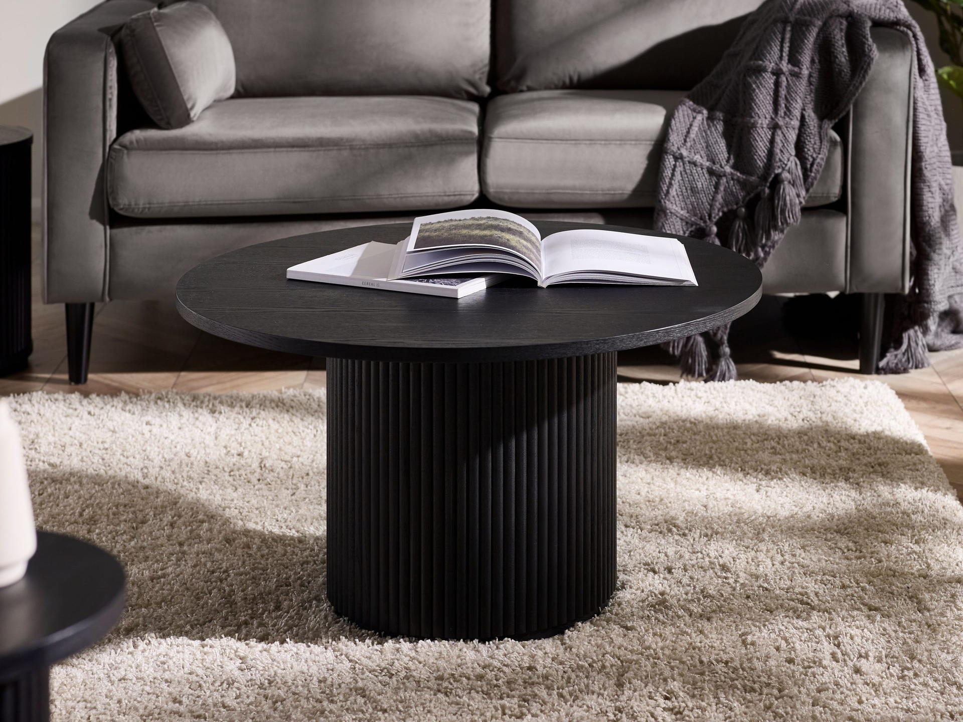 Elevate your space with the Louis Drinks Table in Black, a luxurious addition that seamlessly combines sleek design with opulent detailing. Finished in sumptuous matt black, this table showcases panelled fluted detailing on a pedestal design, creating a sophisticated focal point. The round base adds a touch of modern elegance, effortlessly blending timeless charm with contemporary style. Its top provides the perfect space for drinks, adding both functionality and style to your space. With simple assembly, you can quickly transform your living area with this exquisite piece.