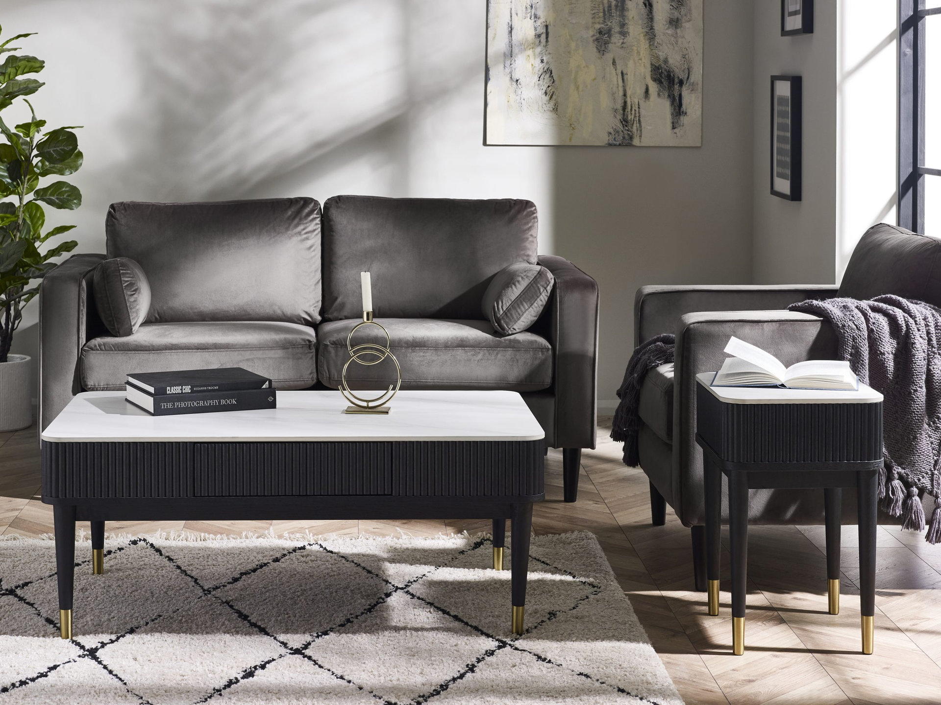 Elevate your living space with chic matt black ribbed edging for timeless sophistication.