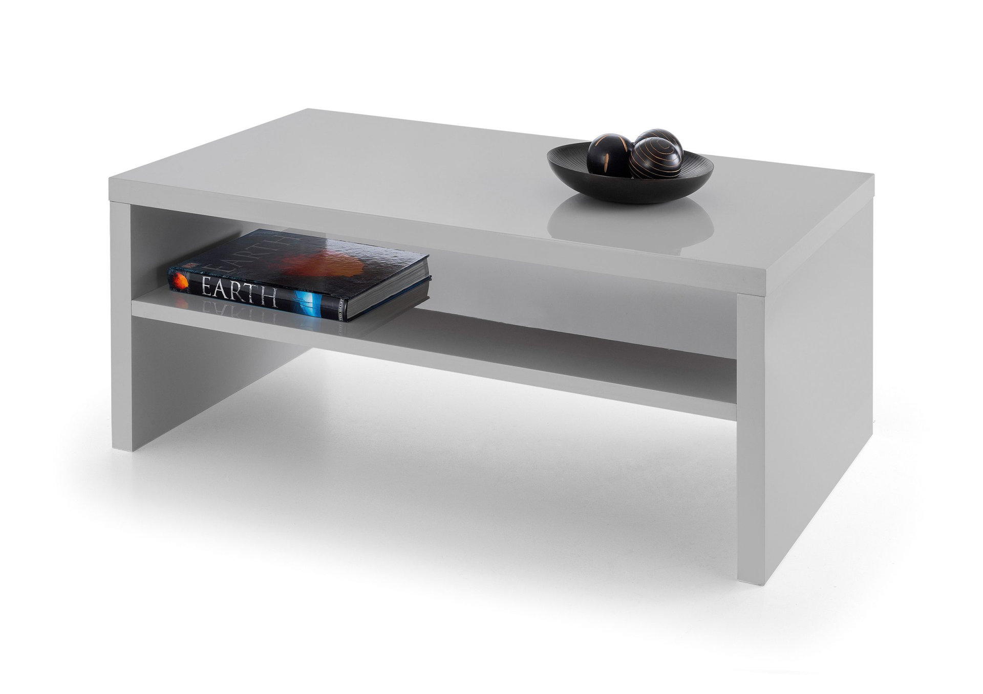 The Metro coffee is a practical, modern high gloss table in grey lacquered finish with a useful storage shelf..