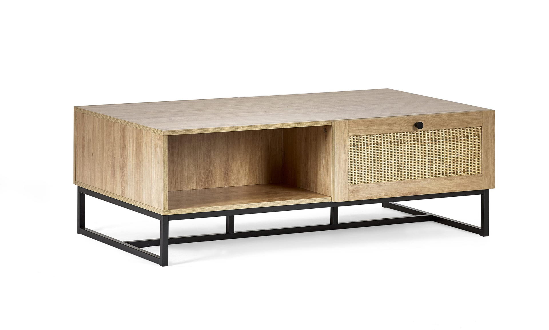 Fusing modern construction with retro design elements, the Padstow collection will exquisitely complement any styled home. The natural rattan fronts and industrial-style base collaborate perfectly to leave a warm yet chic aesthetic in your home. This range includes a bedside, 3 drawer chest, 6 drawer chest, wardrobe, coffee table, TV unit, sideboard, and tall bookcase. Also available in a black finish.