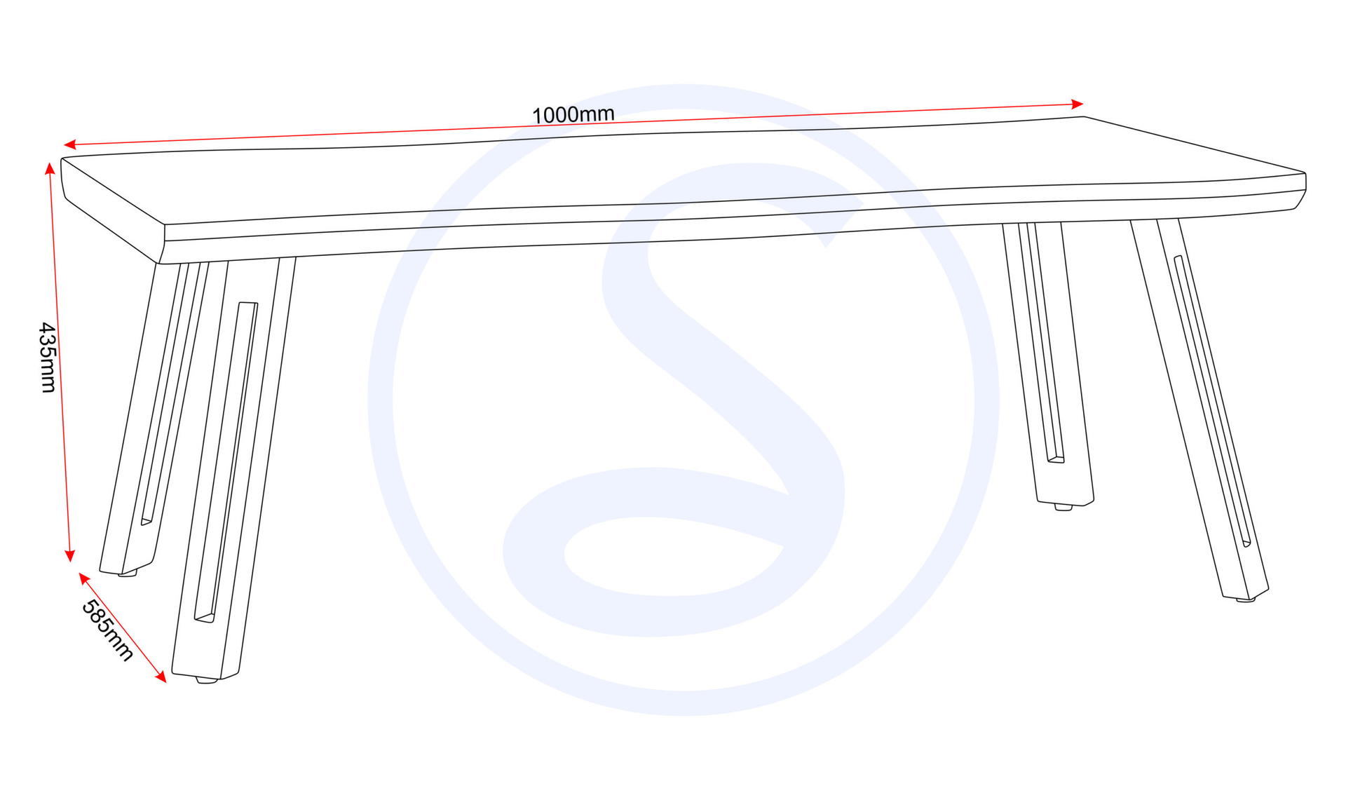 Dimensions 58510 × 100010 × 43510 cm