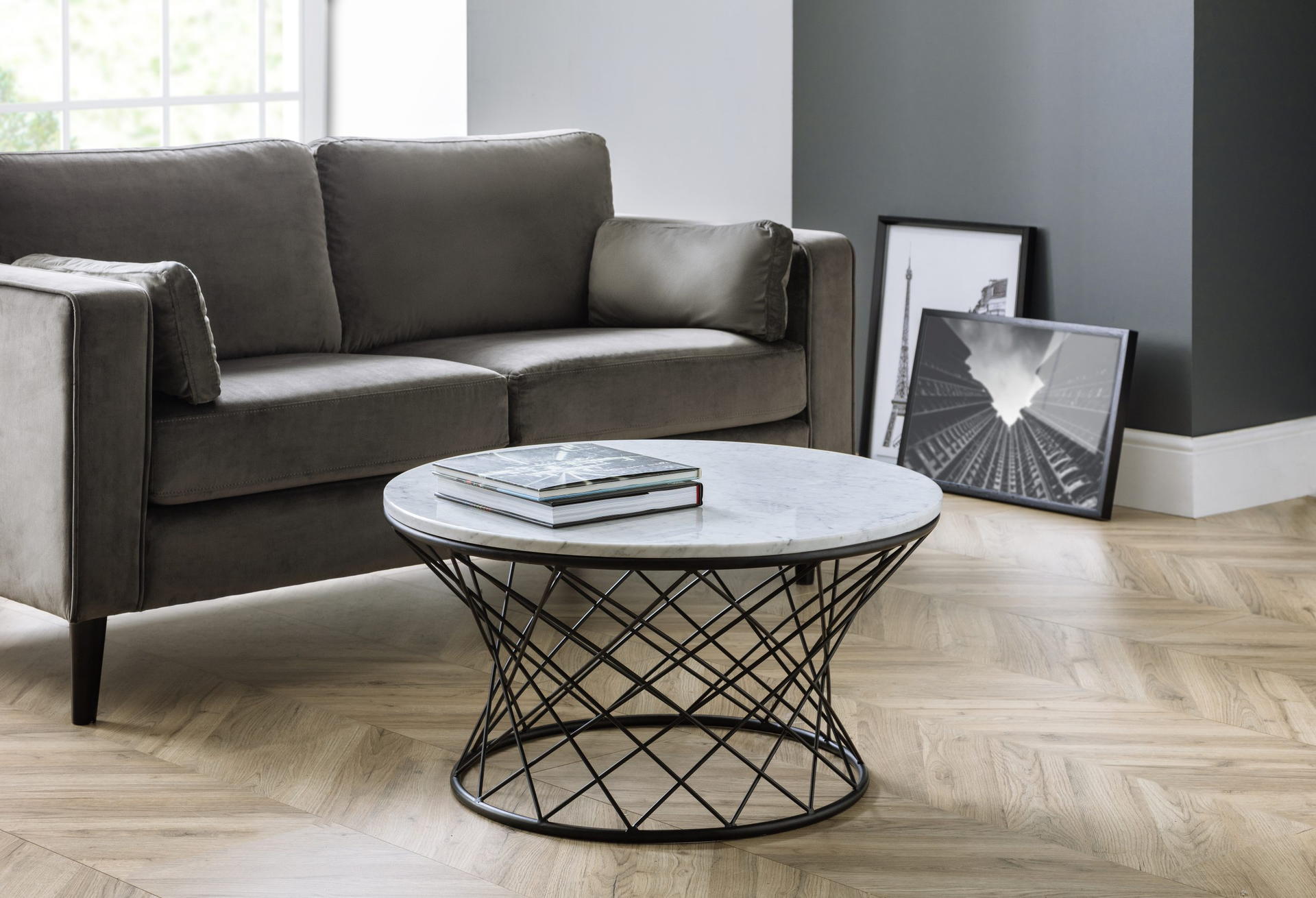 Refresh your living room with the Trevi Coffee Table. Finished with a real white marble top, and a distinctive black wire metal base, this hardwearing design offers a unique, modern look suitable for a range of décor. Each top is slightly different due to the marbles unique nature, giving every coffee table an individual character.