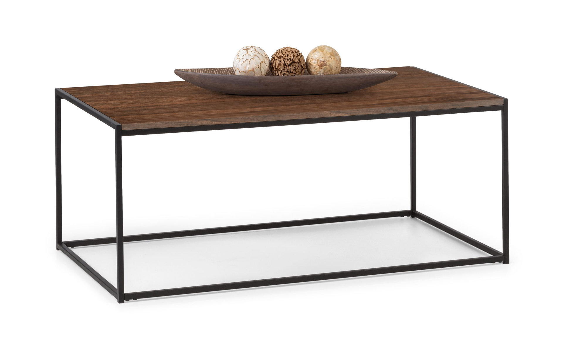 A cool, modern coffee table designed to add a contemporary touch to any home or work place. Its simple clean lines, delineated by a subtle, black coated metal frame are complemented perfectly by a warm, walnut foil, to create a very stylish and sleek product.