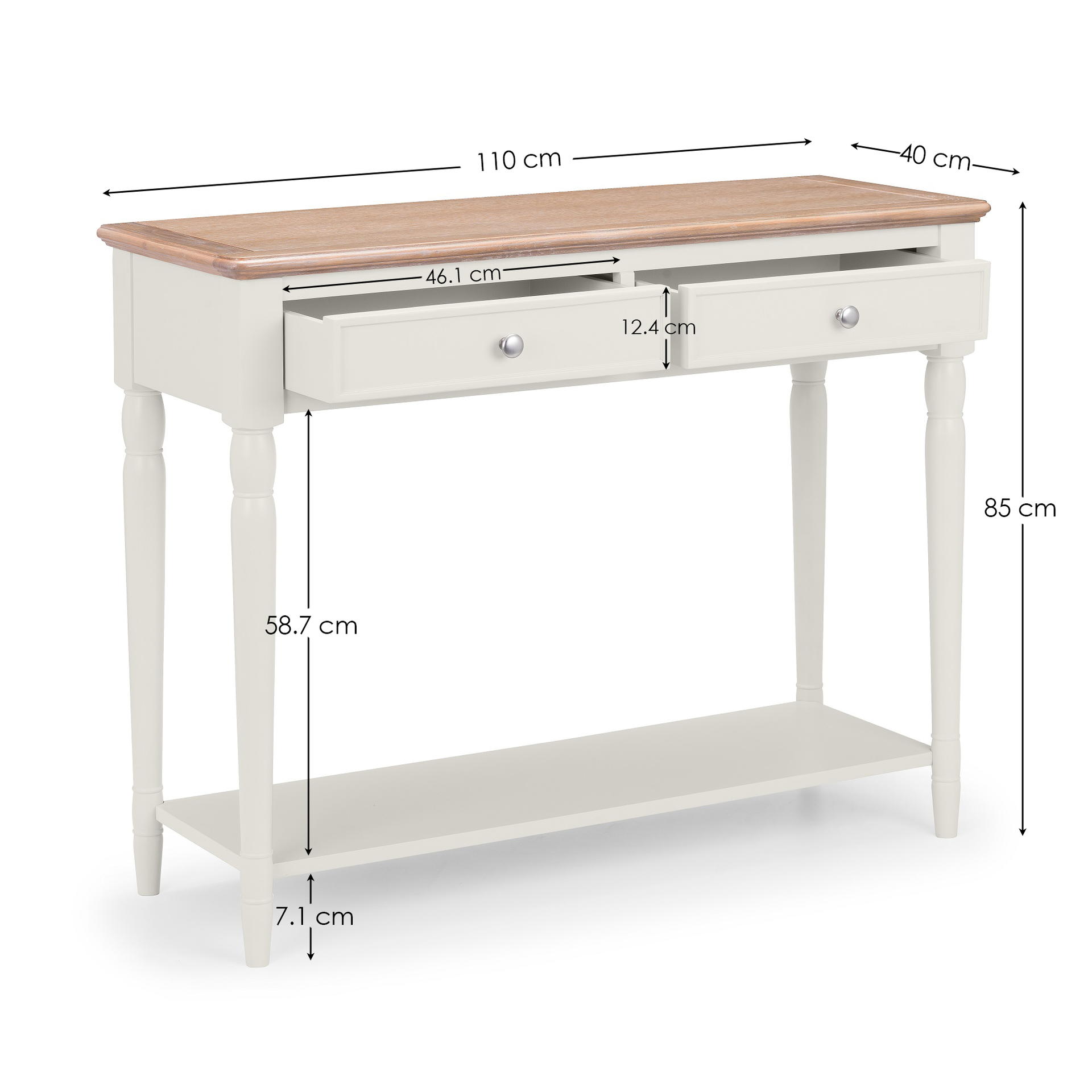 This timeless console table offers an authentic antique design with a classic turned leg detail perfect for contemporary spaces as well as traditional homes. Finished in a grey lacquer with a limed oak effect top, the Provence features additional storage with 2 drawers, perfect for storing your keys, wallet and everyday essentials to hand as you head out of the door. Part of the Provence dining and occasional collection, this dining table becomes a stunning set when paired with the Provence dining chairs.