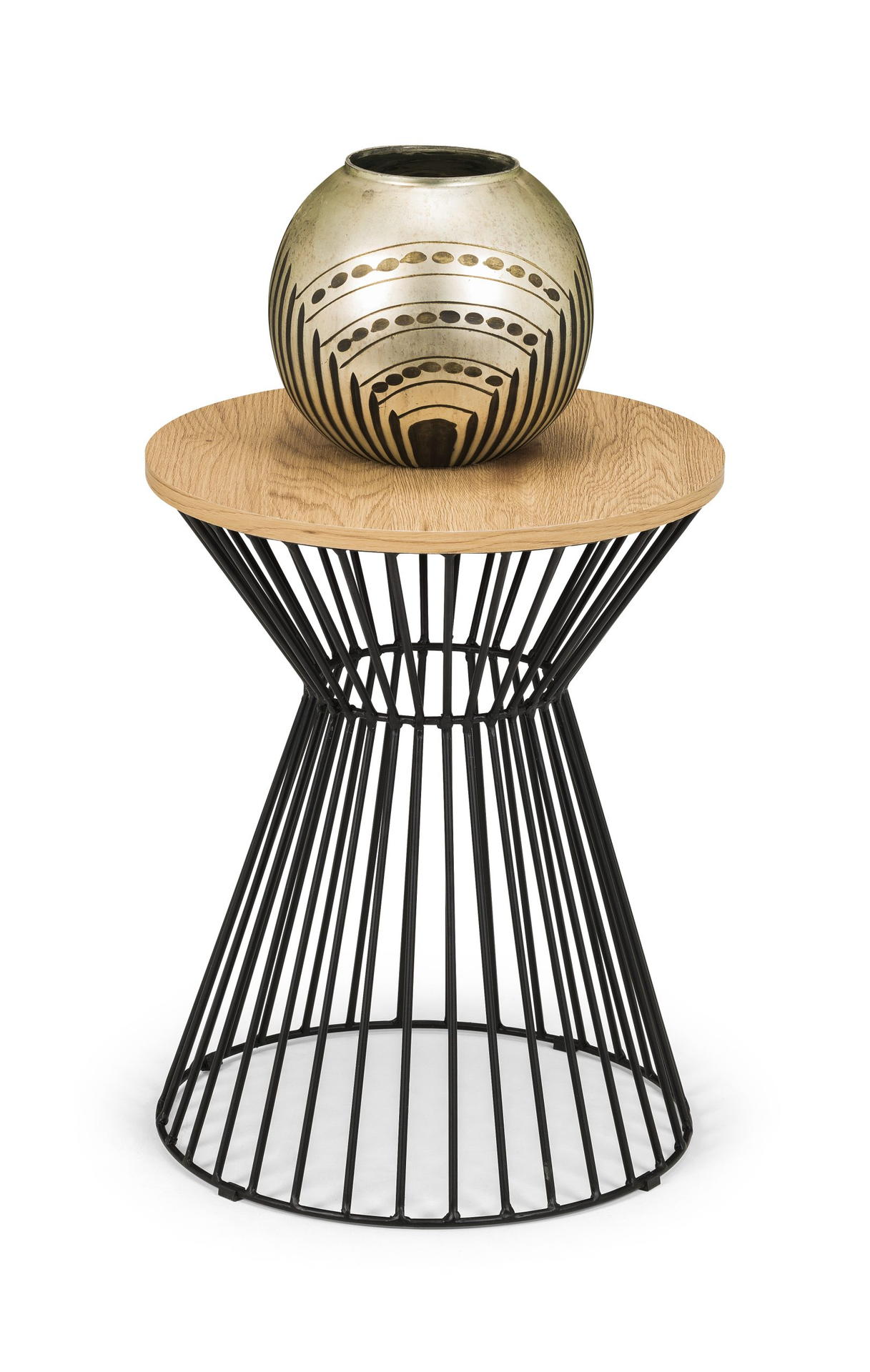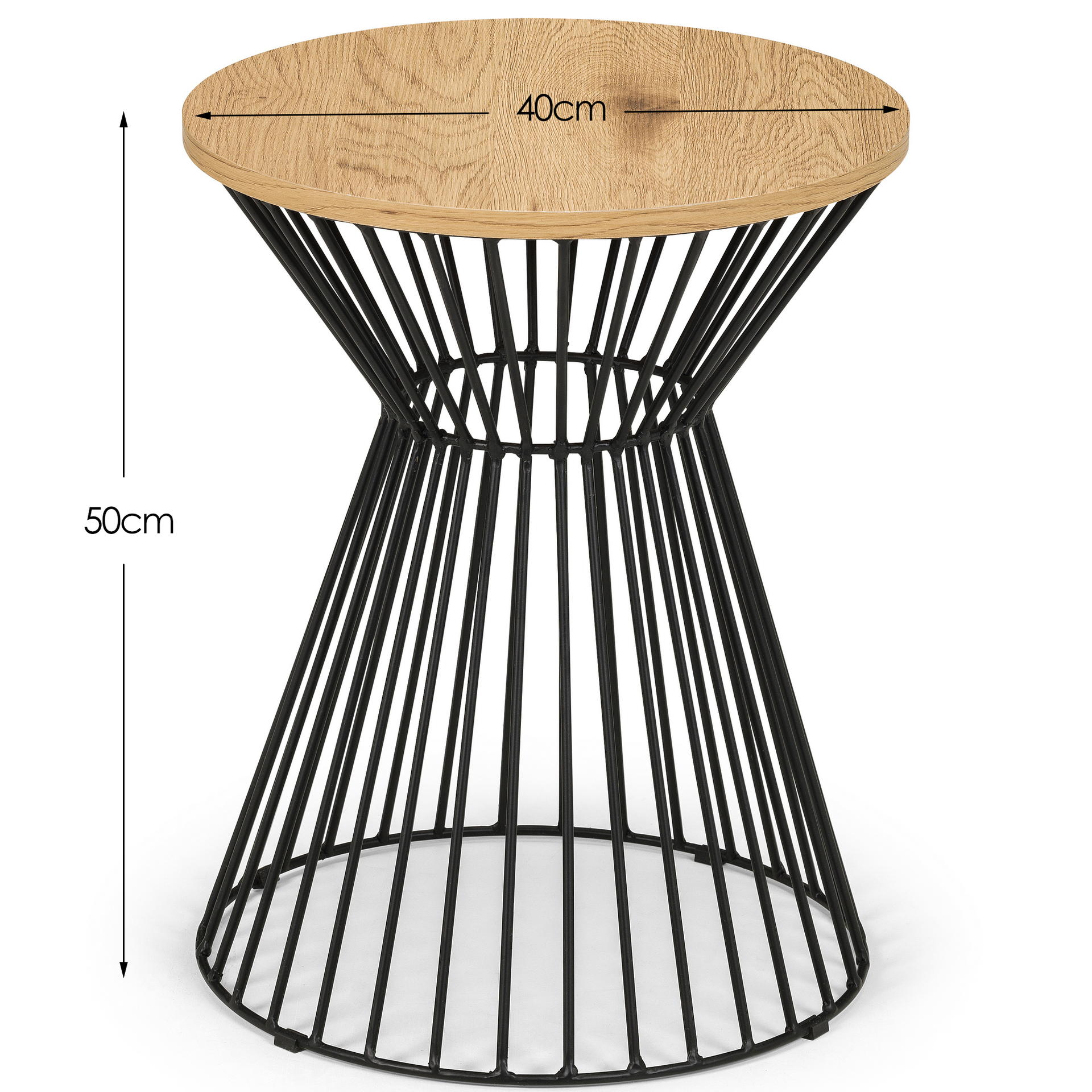 The Jersey Lamp Table will add a contemporary addition to any living area. Featuring a black wire frame with a fixed round oak effect top, this lamp table creates a striking industrial feel with a classic contrast.