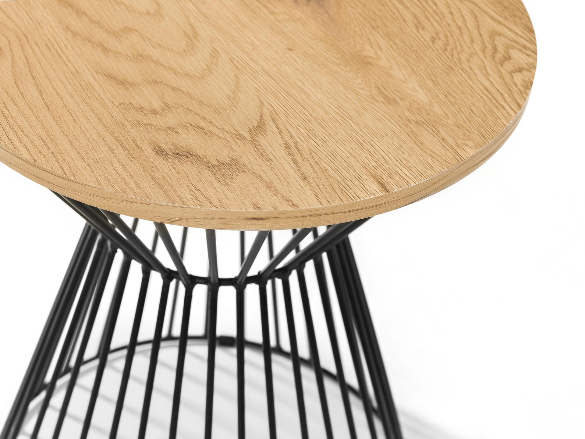 Oak effect top with a black wire base.
