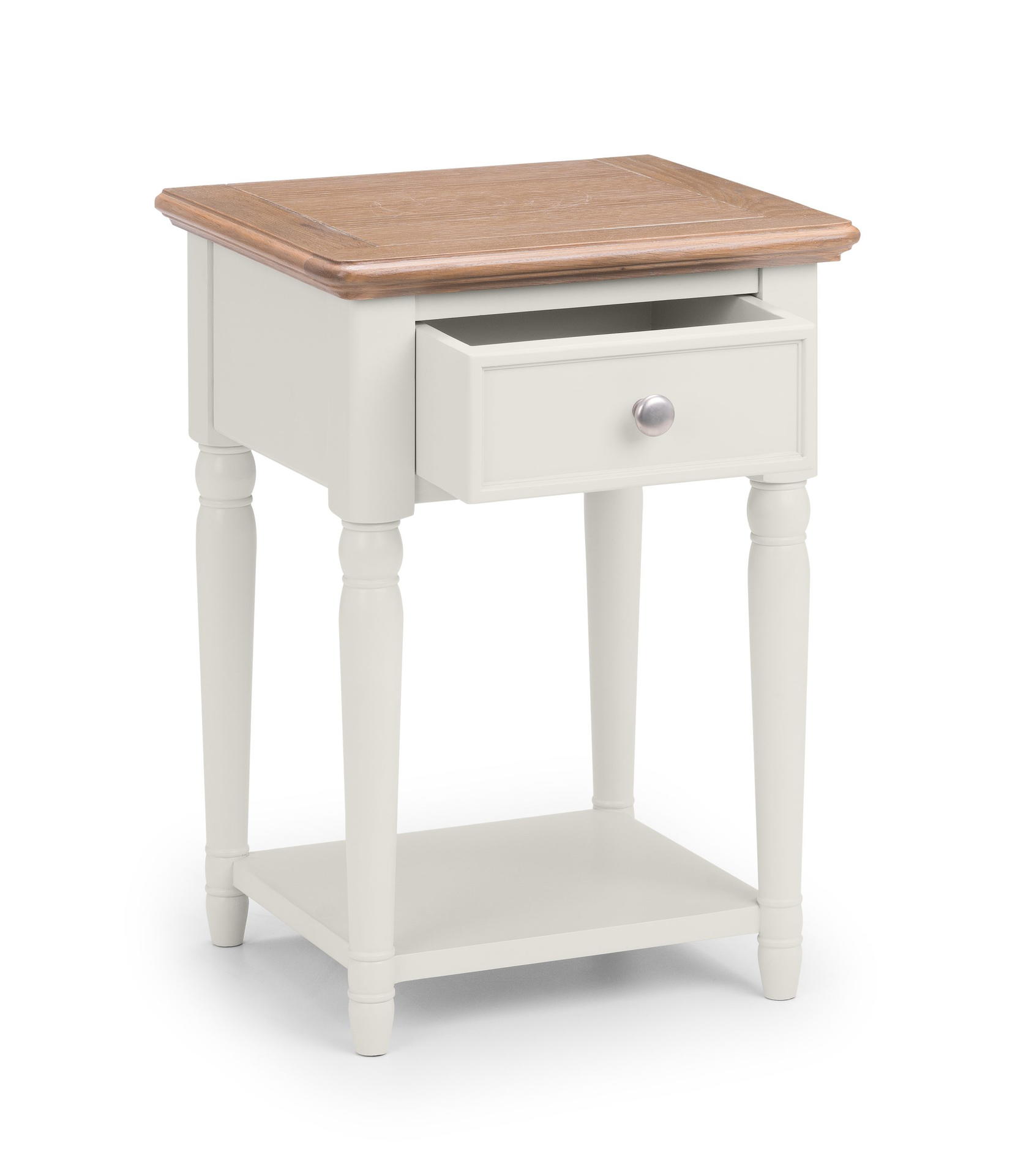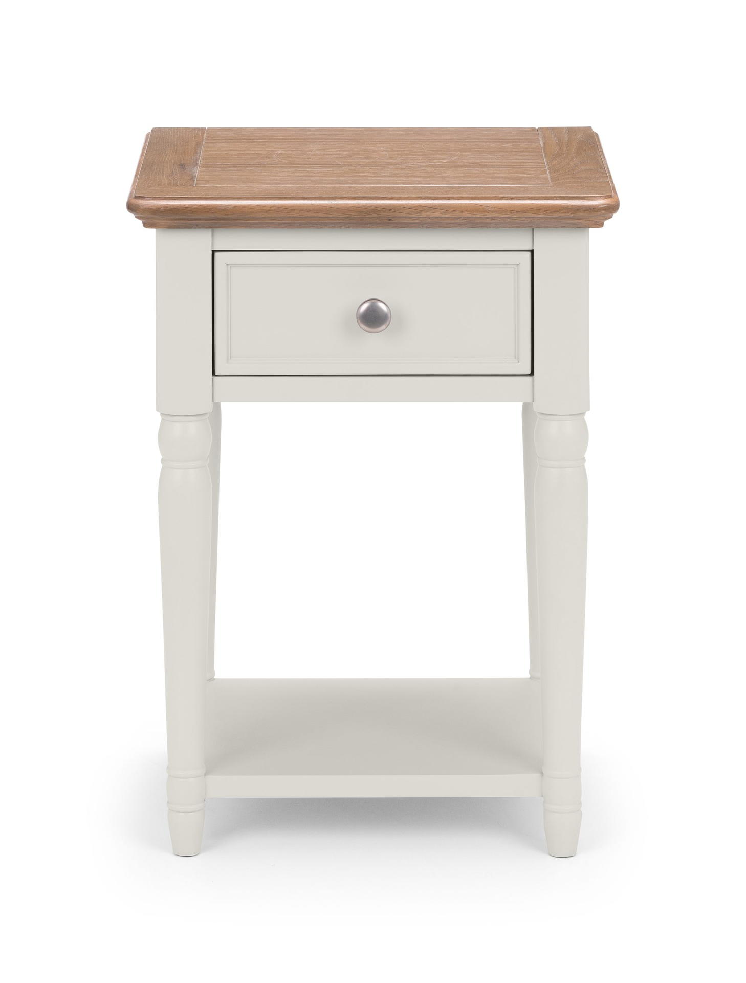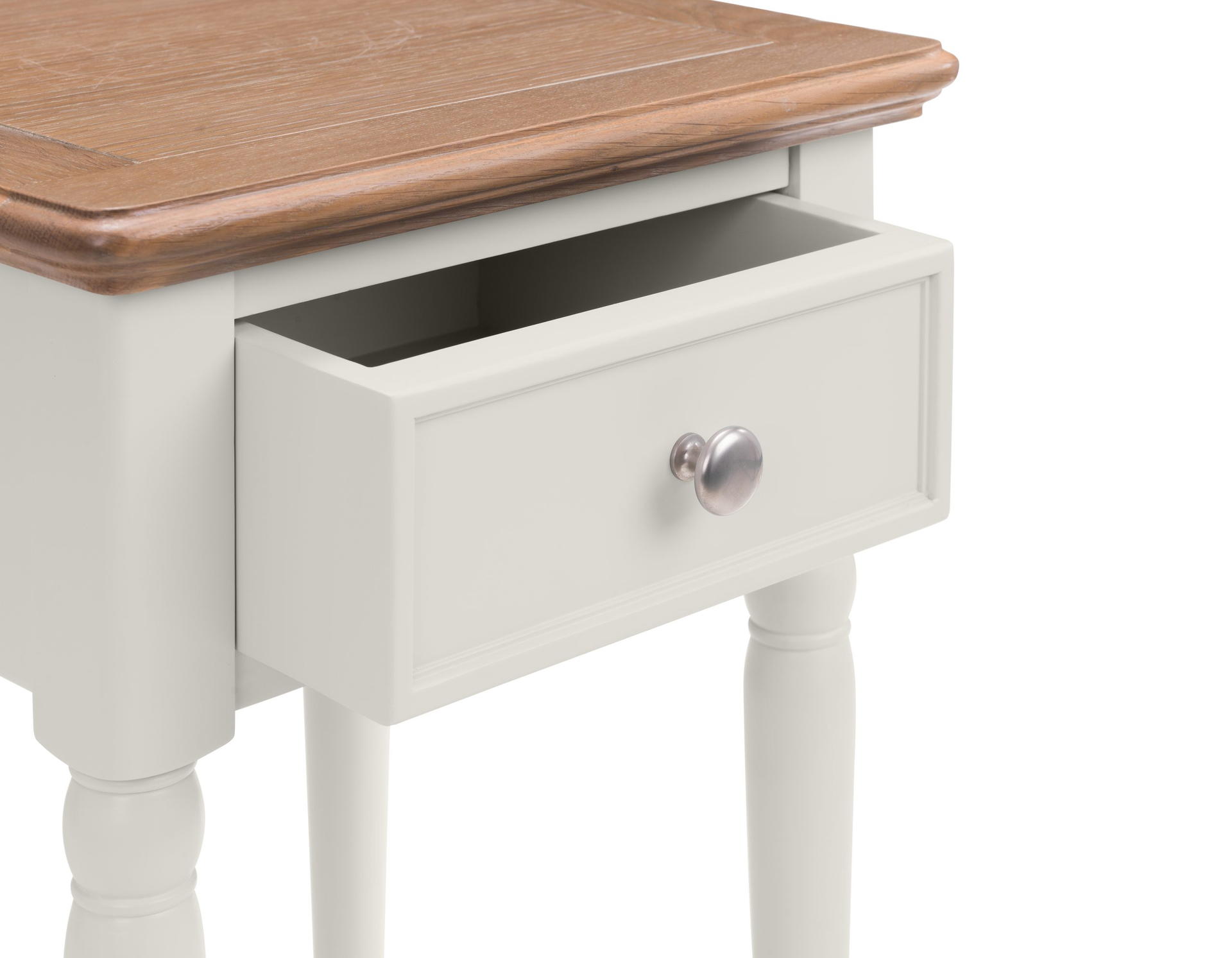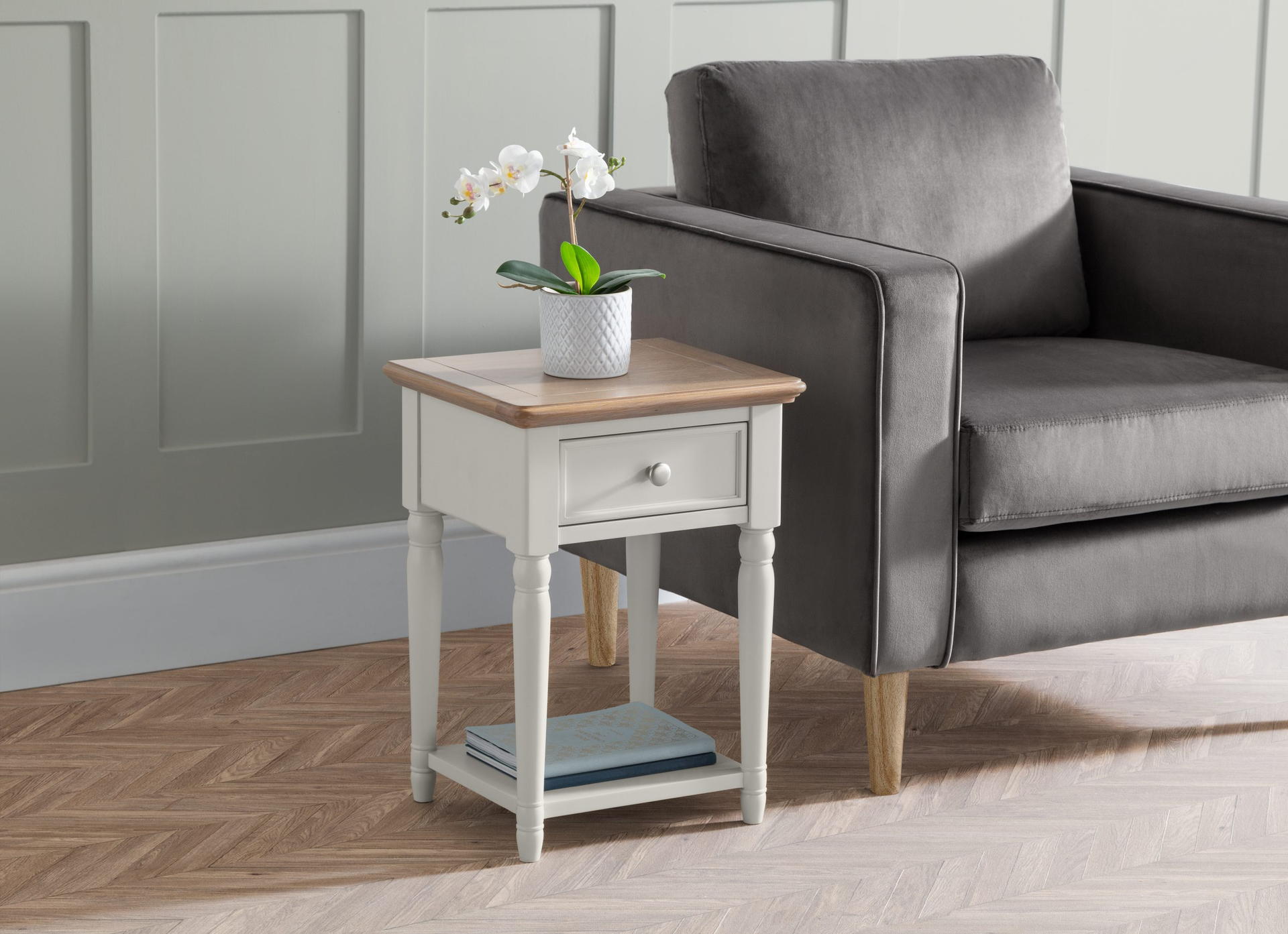 This timeless lamp table offers an authentic antique design with a classic turned leg detail perfect for contemporary spaces as well as traditional homes. Finished in a grey lacquer with a limed oak effect top, the Provence features additional storage with a drawer, the perfect size for storing controllers or magazines. Part of the Provence dining and occasional collection, this dining table becomes a stunning set when paired with the Provence dining chairs.