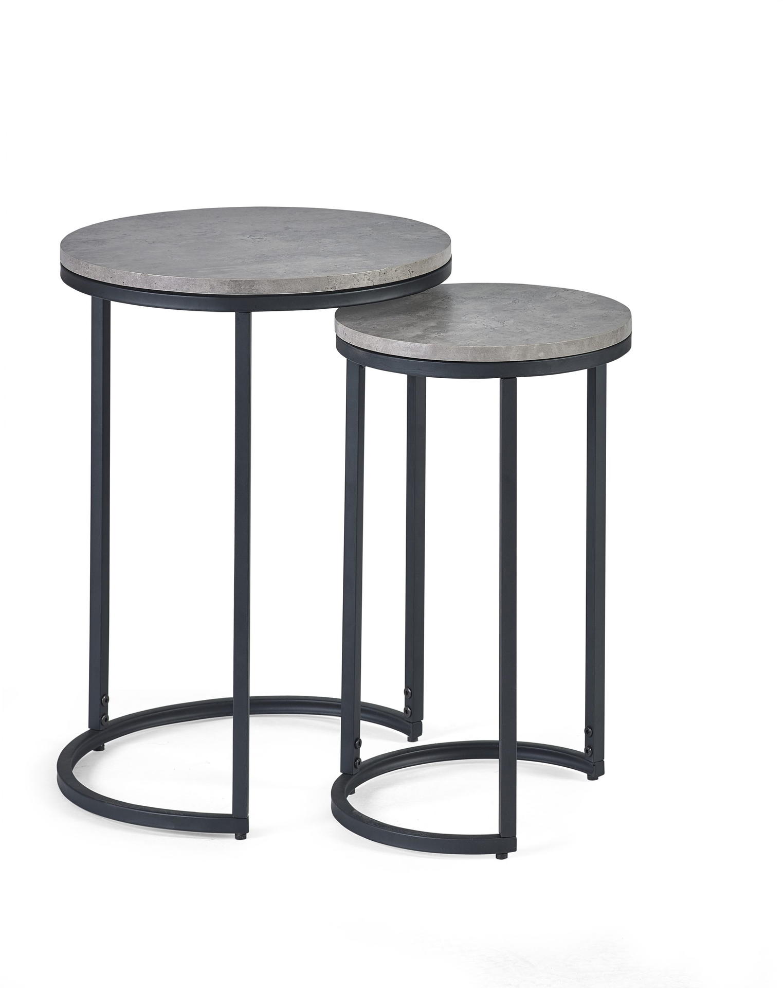 Simplistic in design with a contemporary style, the Staten Nesting Side Table will add a stunning industrial look to any living and dining area. Constructed from a black coated metal frame, complemented by a striking concrete effect tops, to create a very stylish, modern product. Part of the Julian Bowen Staten Dining and Occasional Collection.