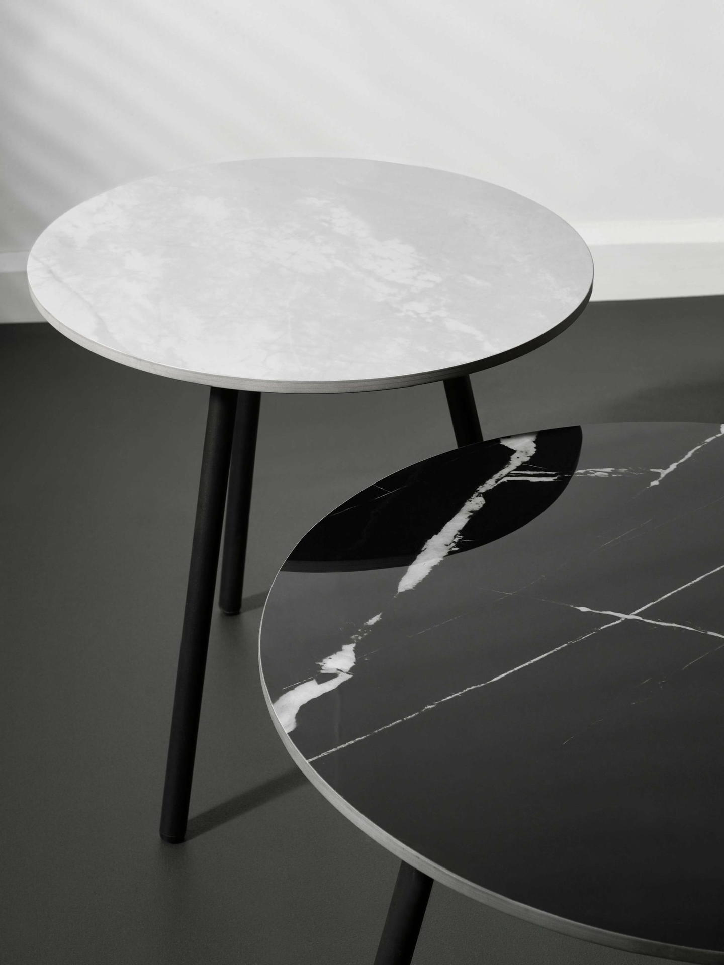 Upgrade your living space with the Casper Nest of Tables in Grey and Black, combining modern style and everyday functionality. The sintered marble effect tops have a sophisticated grey & black finish with natural veining, replicating the beauty of real stone with easy maintenance. Paired with sleek black metal legs, this set adds depth and character to any contemporary setting. Use them together for a stylish layered effect or separately for added versatility—perfect for drinks, books, or decorative accents. Requires only minimal assembly for a quick and hassle-free setup.