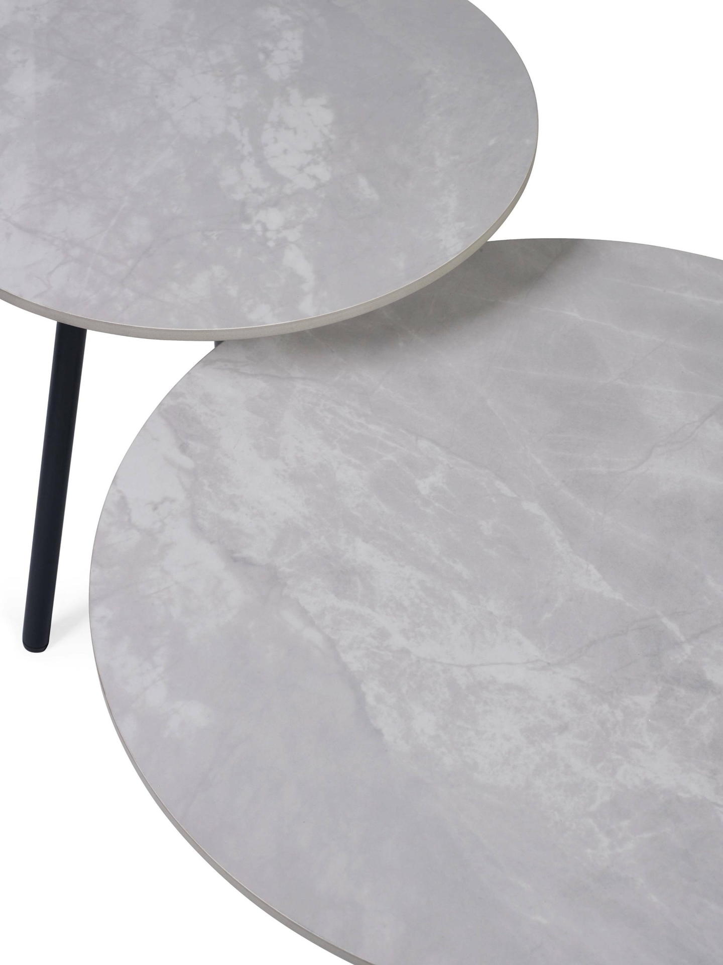 Transform your living space with the Casper Nest of Tables, where modern design meets everyday practicality. The sintered stone marble effect tops, finished in a rich grey with delicate veining, capture the timeless elegance of natural stone whilst ensuring durability and easy maintenance. Sleek black metal legs provide a bold yet sophisticated contrast, making this set a striking addition to any room. Use them together for a stylish layered effect or separately for added versatility—perfect for drinks, books, or decorative accents. Built to last and designed for a quick, hassle-free setup.