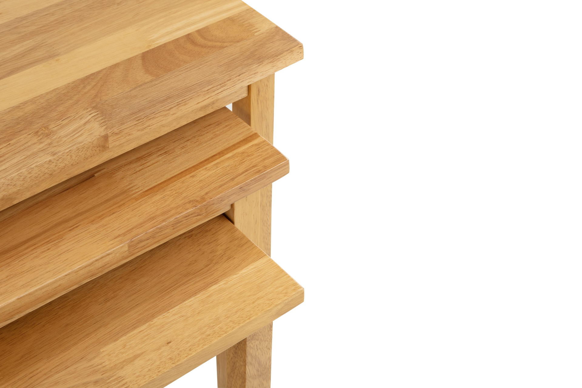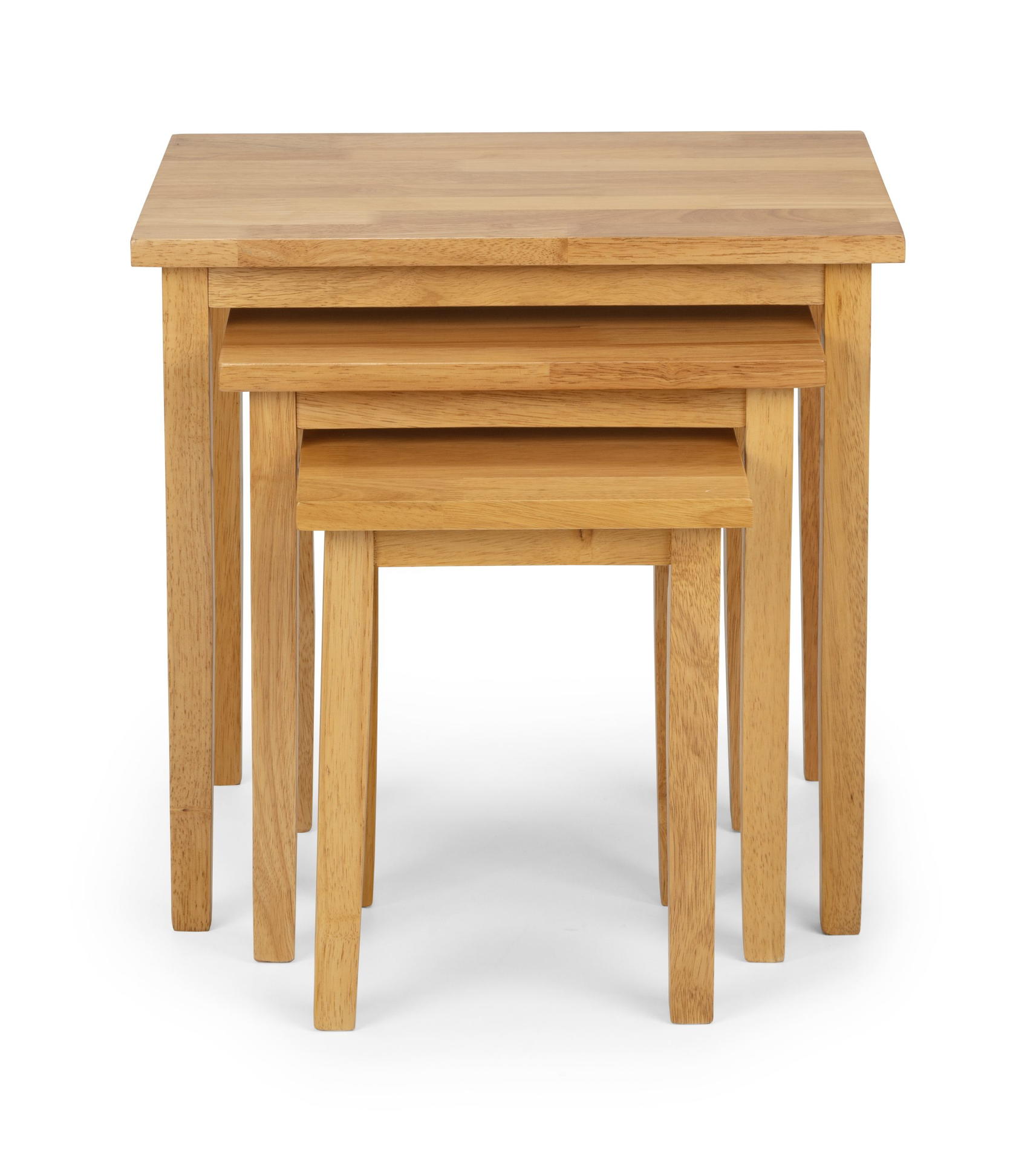 Cleo is a stylish and practical range of dining and occasional furniture which offers outstanding value for money. Its timeless design complements contemporary and traditional interior styles equally well. The Cleo natural oak nest offers great versatility, comprising 3 tables crafted from solid rubberwood and finished with a light oak stain