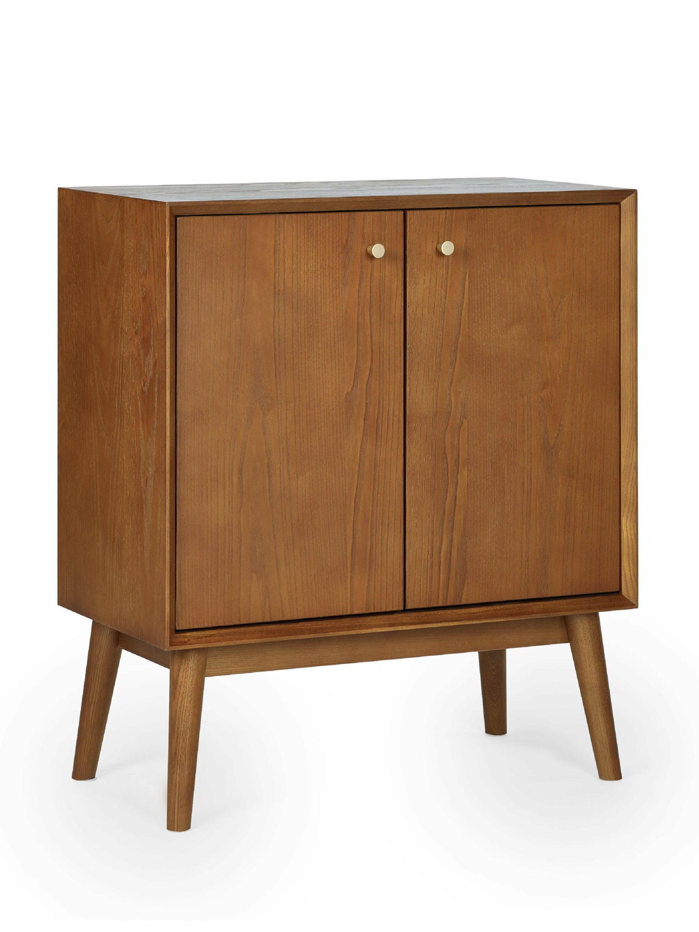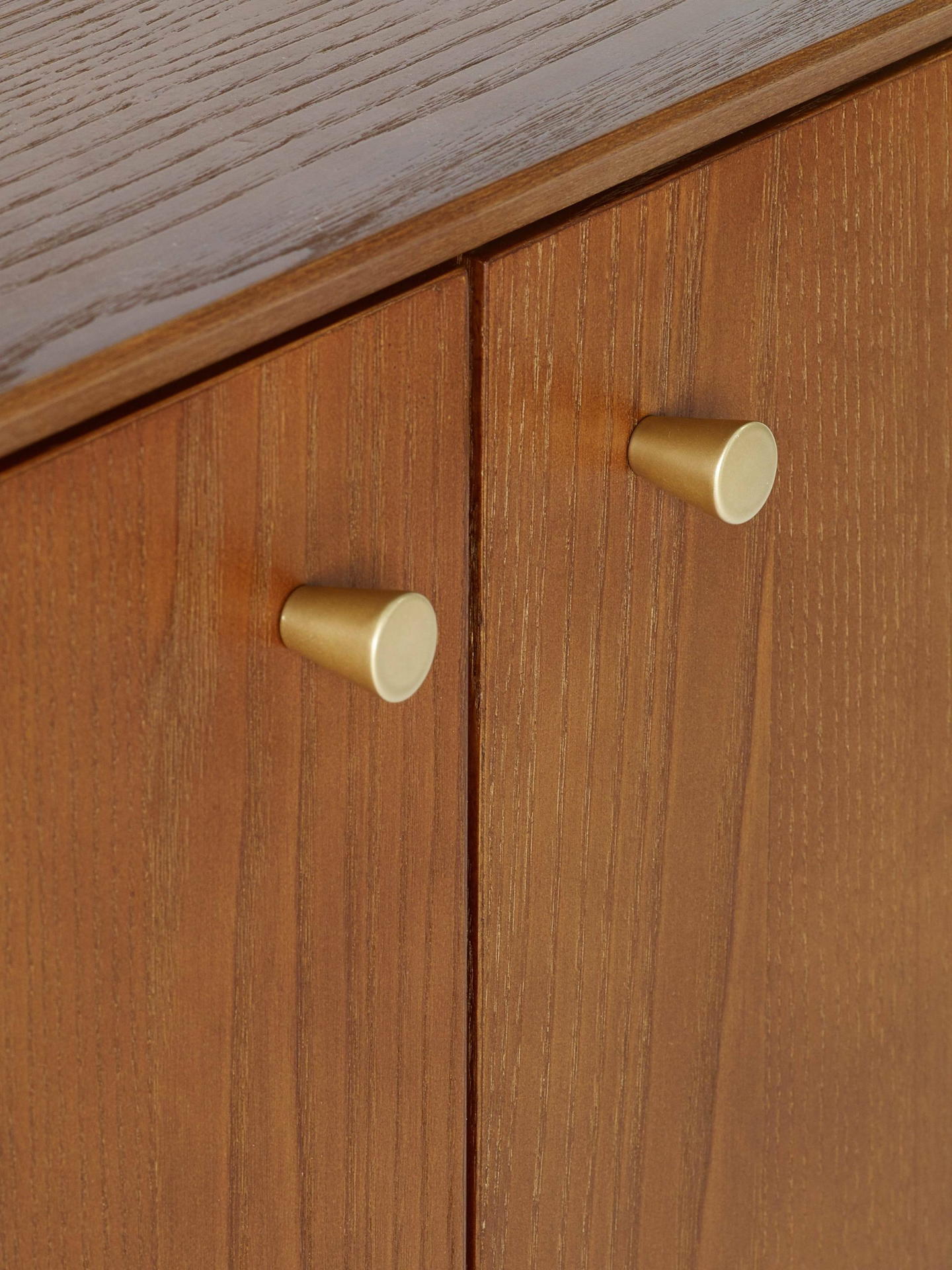 A gorgeous retro-inspired style, the Lowry Small Sideboard is constructed from an exquisite cherry ash wood veneer with beautifully tapered legs. Featuring soft-touch cupboard doors and interior shelving, ideal for storing necessities. Complemented by gold framed knobs, providing the perfect timeless staple to any occasional space.