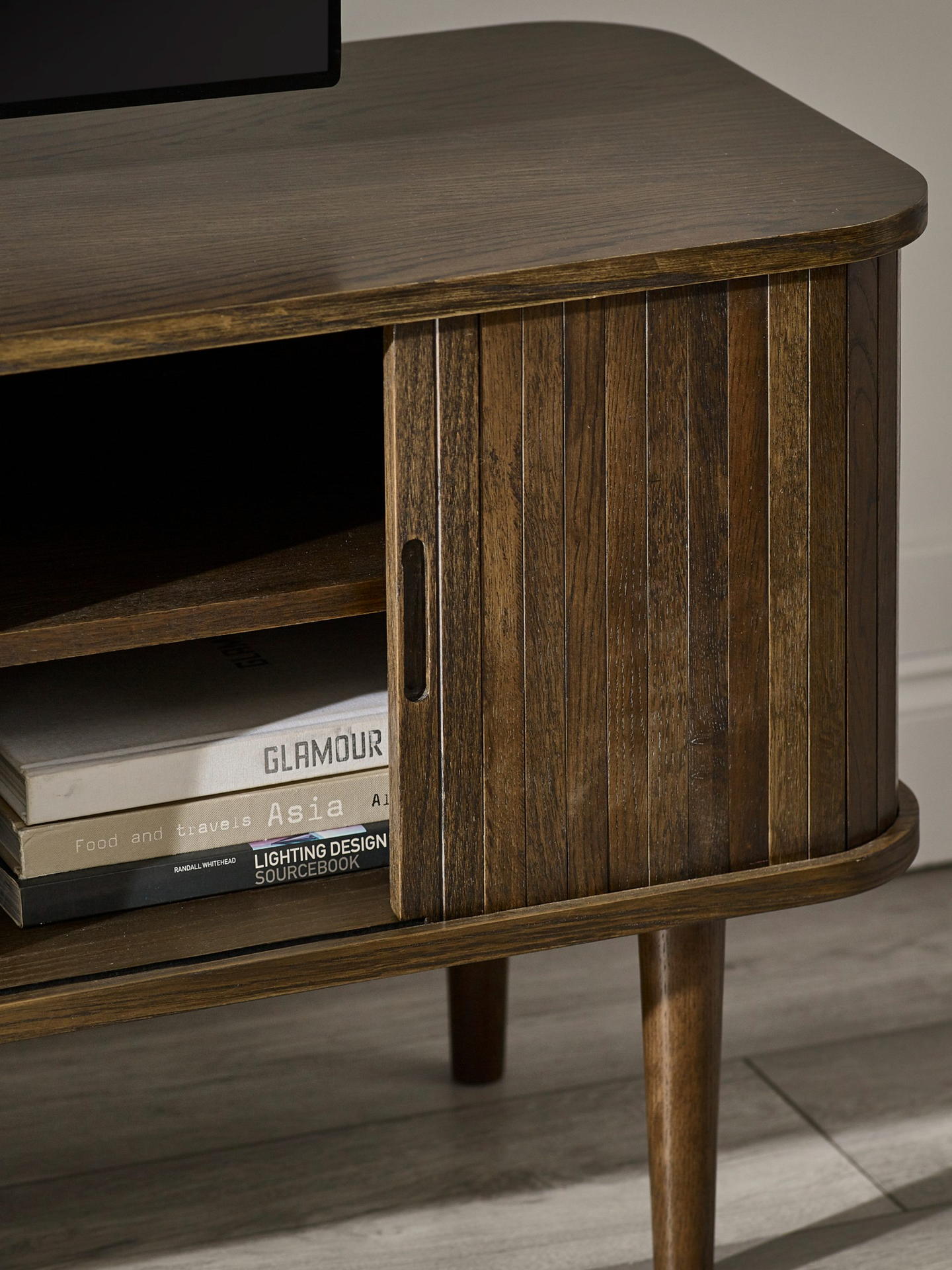 Dark oak effect with sleek tambour doors finish