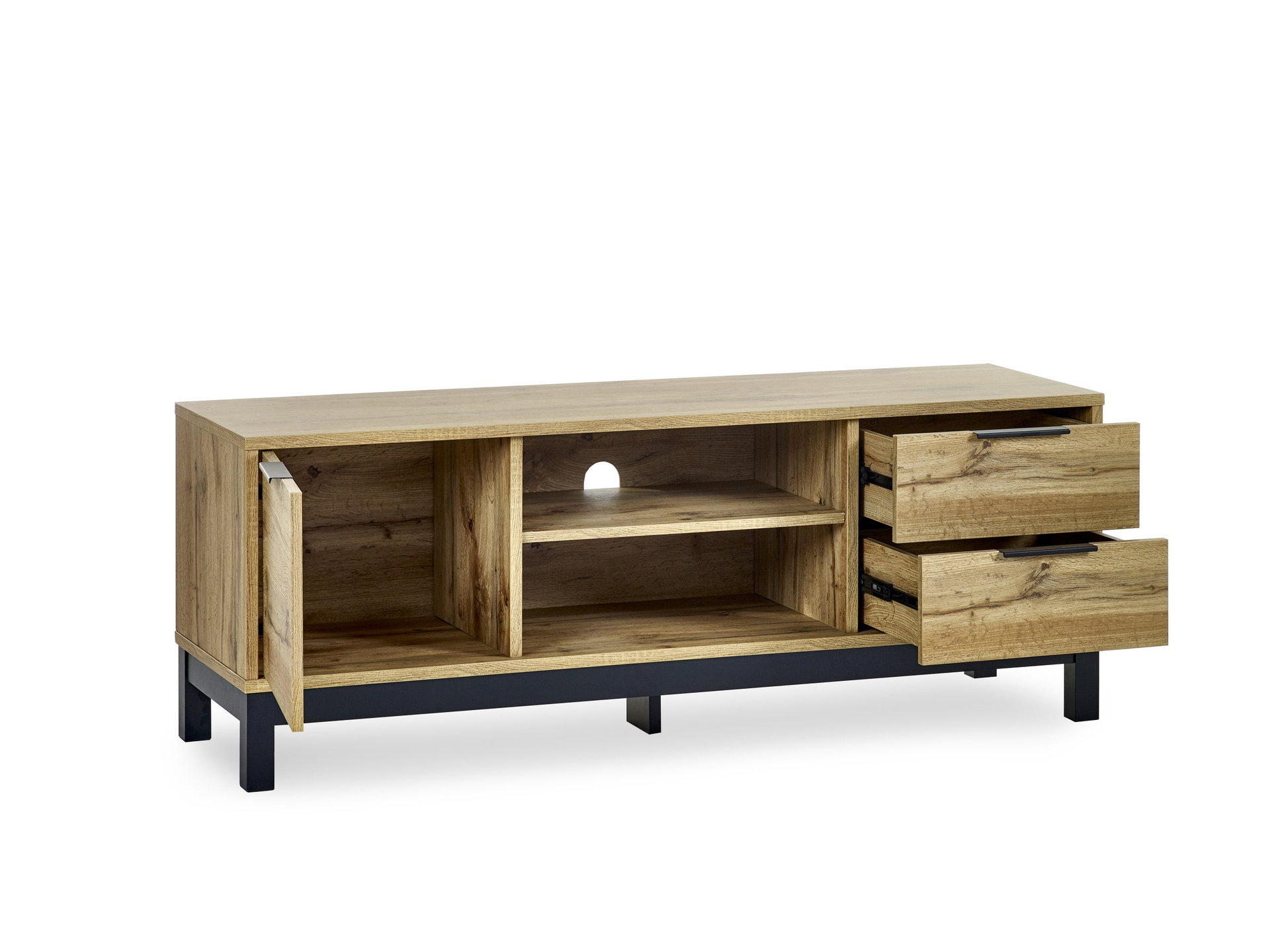 Featuring a spacious cupboard and two pull-out drawers, offering generous storage space for all your entertainment essentials.