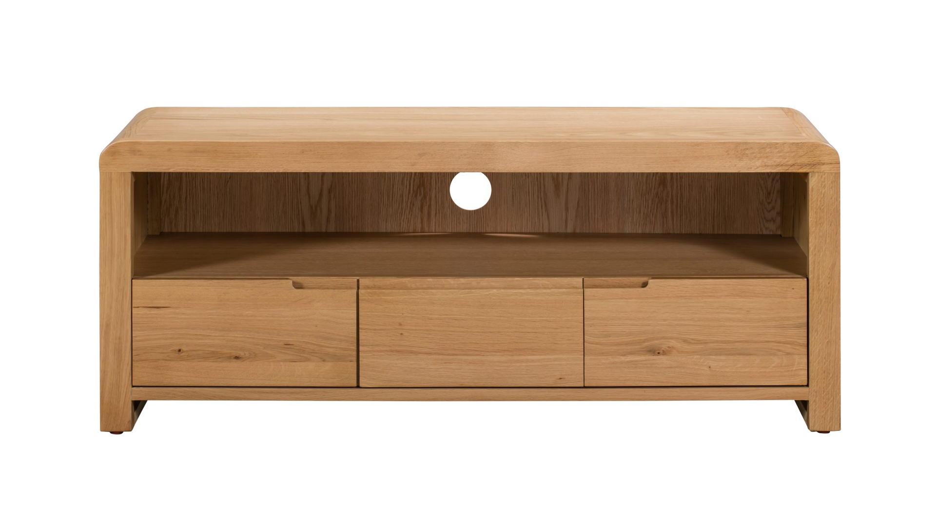 Crafted from solid oak and oak veneers, the Curve combines clean lines with a gentle curved edging, adding a modern, retro feel to any dining area. The Curve TV Unit offers ample shelf space for set-top boxes, along with three small drawers perfect for DVD’s and remote controls. Part of the Julian Bowen Curve Dining and Occasional Collection