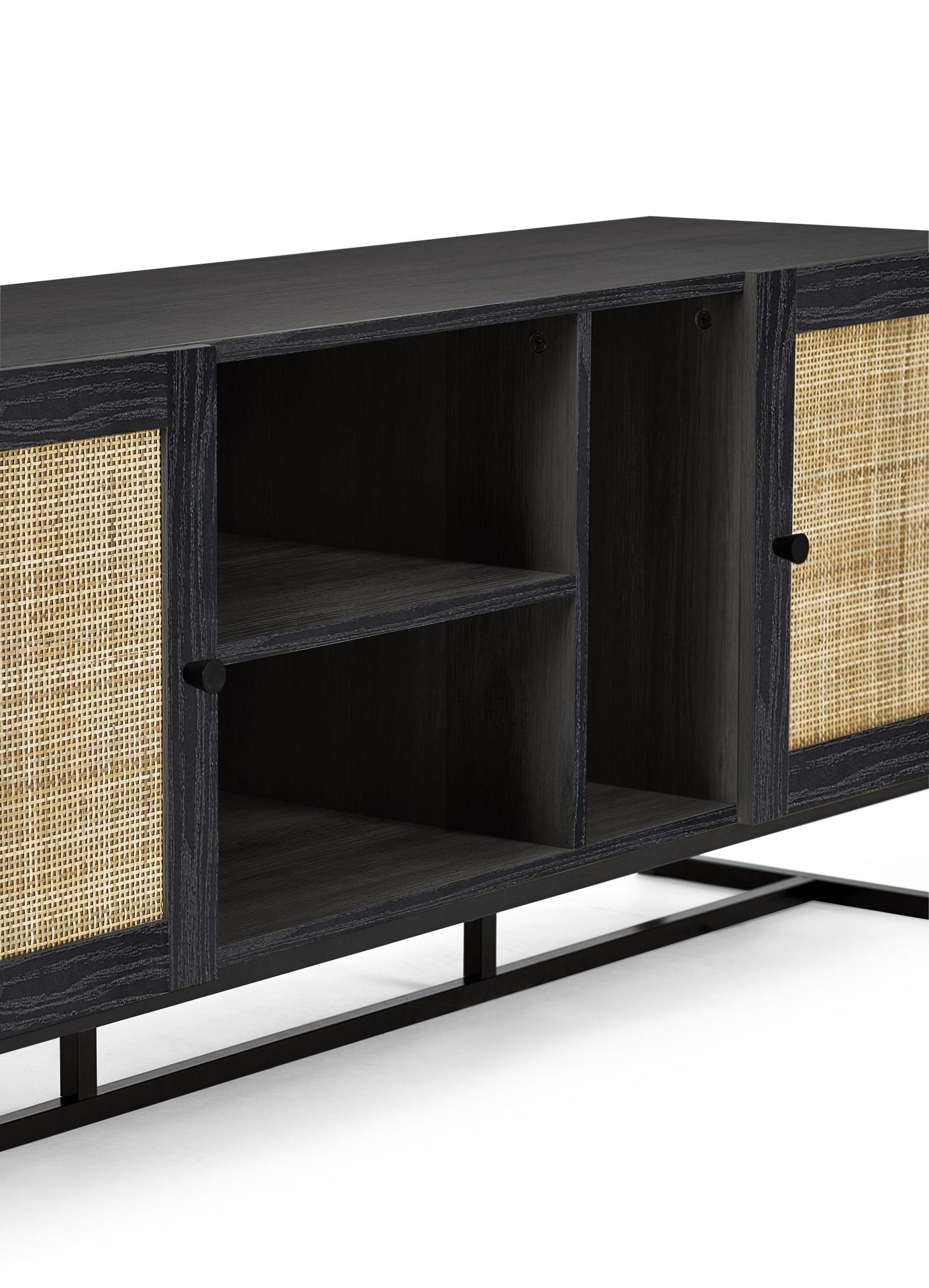 Fusing modern construction with retro design elements, the Padstow collection will exquisitely complement any styled home. The natural rattan fronts and industrial-style base collaborate perfectly to leave a warm yet chic aesthetic in your home. This range includes a bedside, 3 drawer chest, 6 drawer chest, wardrobe, coffee table, TV unit, sideboard, and tall bookcase. Also available in an oak finish.