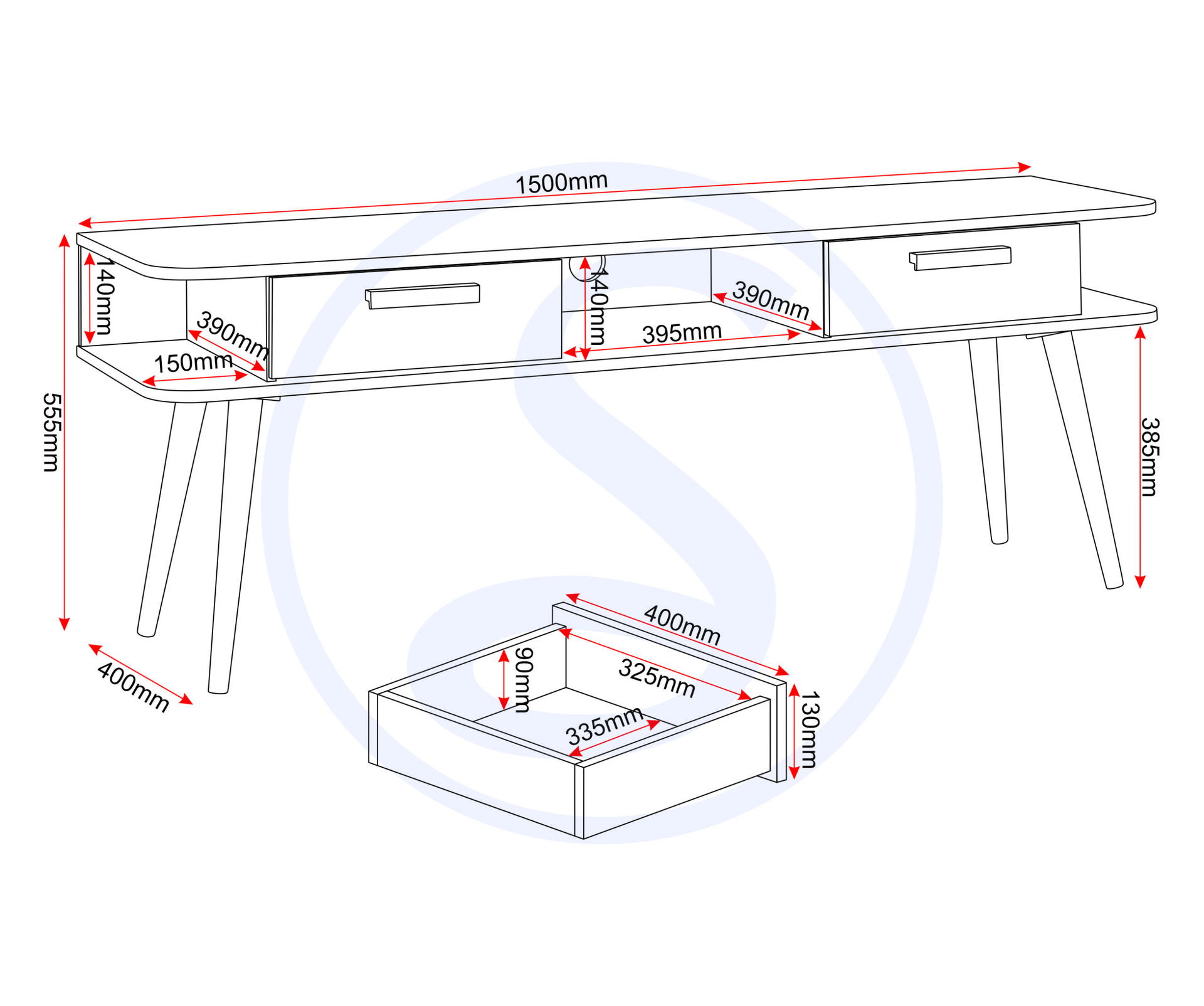 Saxton 2 Drawer TV Unit