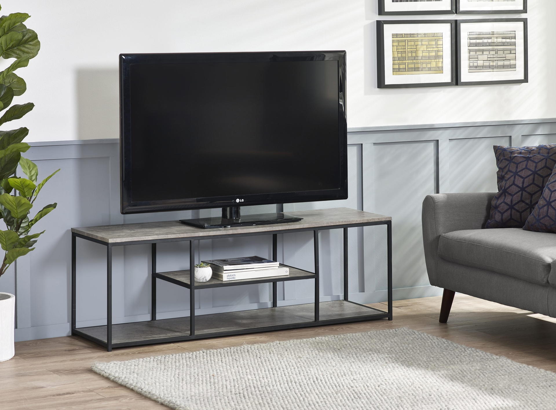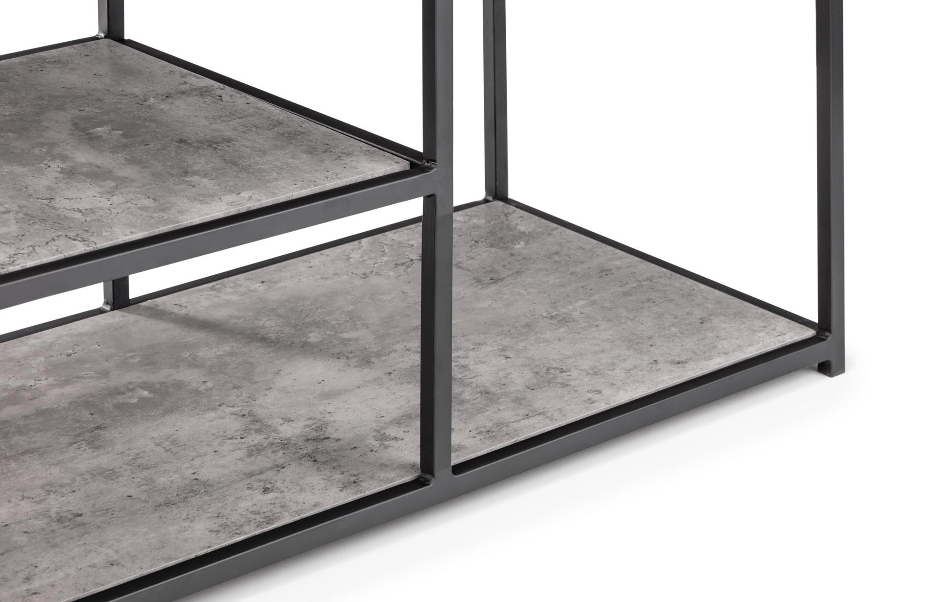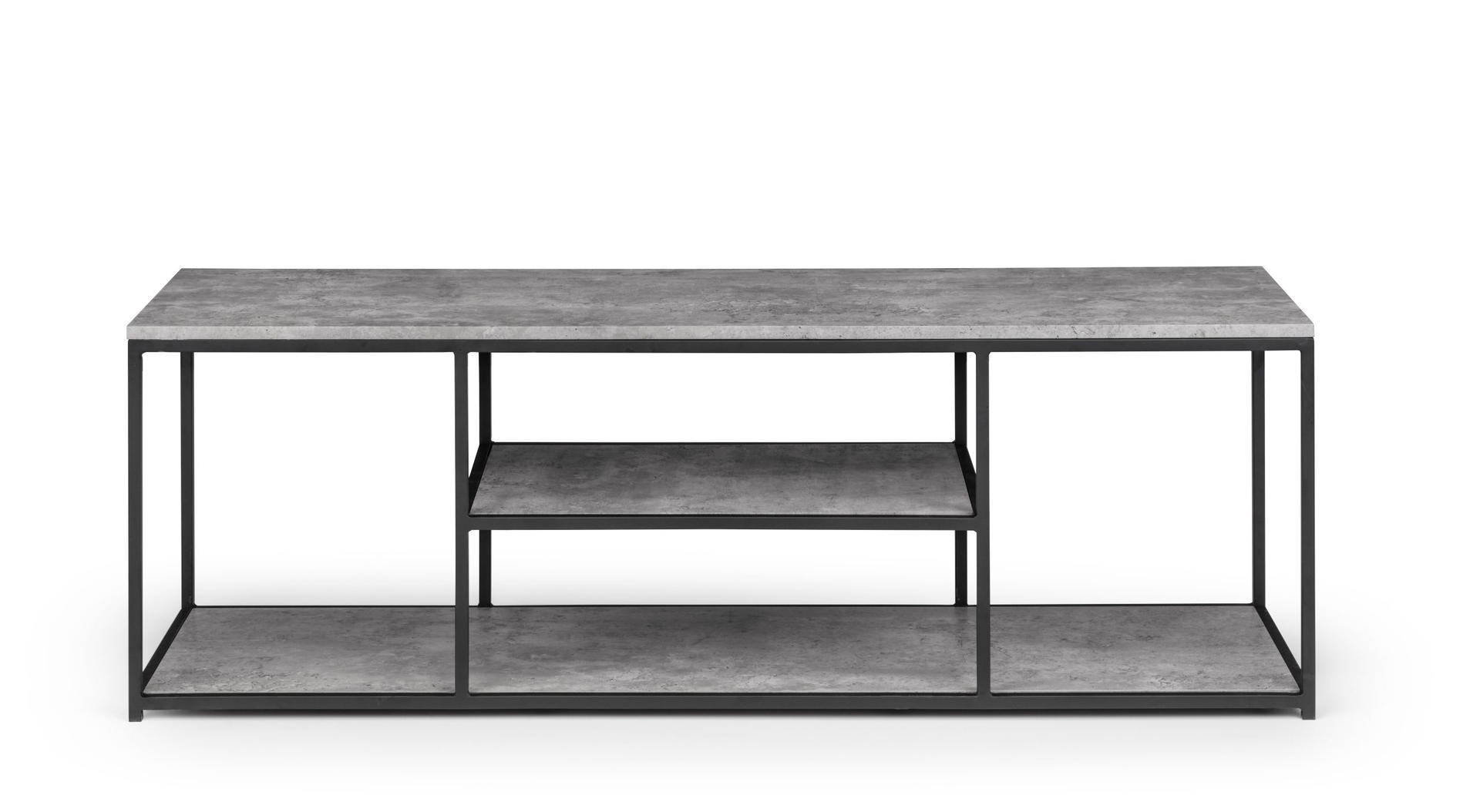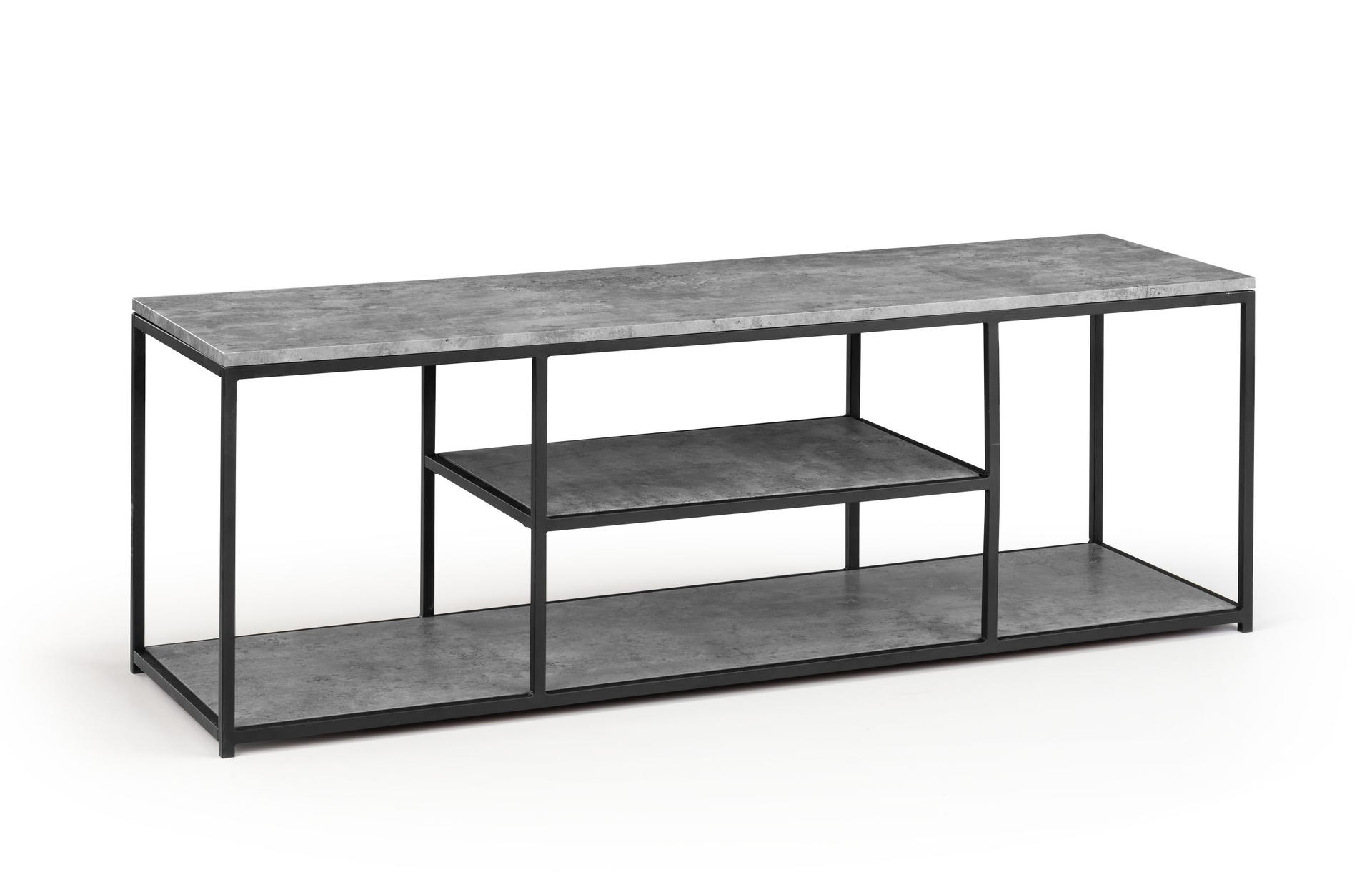 Simplistic in design with a contemporary style, the Staten TV Unit will add a stunning industrial look to any living and dining area. Constructed from a black coated metal frame, complemented by a striking concrete effect tops, to create a very stylish, modern product. Part of the Julian Bowen Staten Dining and Occasional Collection.