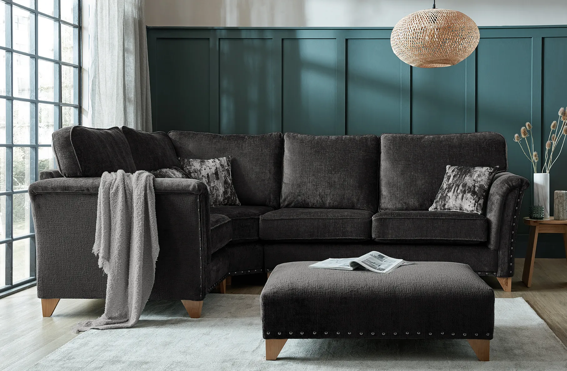 Pictured here in a 1 Seater – Wedge Corner – Chaise configuration and shown in Daytona Coal fabric, the Carrington is fully customizable to suit your style and space. Choose from a wide range of fabrics, colours, and layout options to create a piece that reflects your personal taste. Whether you’re after understated elegance or a cosy, welcoming atmosphere, the Carrington makes a bold and beautiful statement.