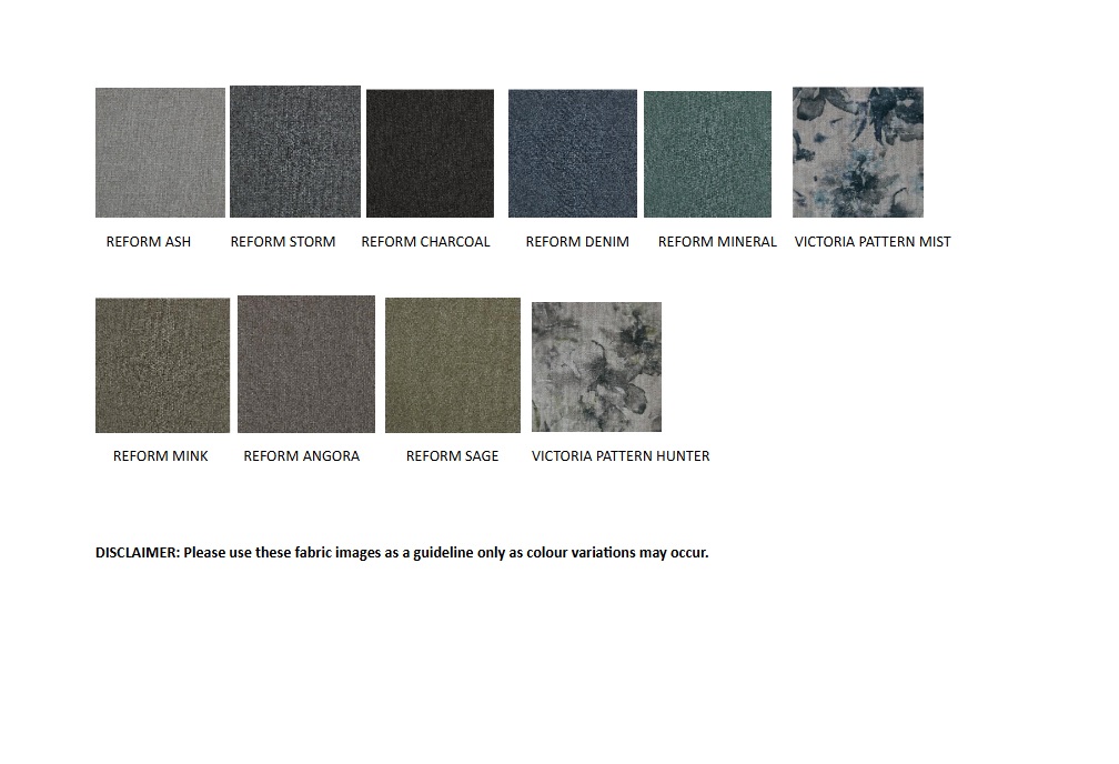 | Colour Option | Reform Angora, Reform Ash, Reform Charcoal, Reform Denim, Reform Mineral, Reform Mink, Reform Sage, Reform Storm |