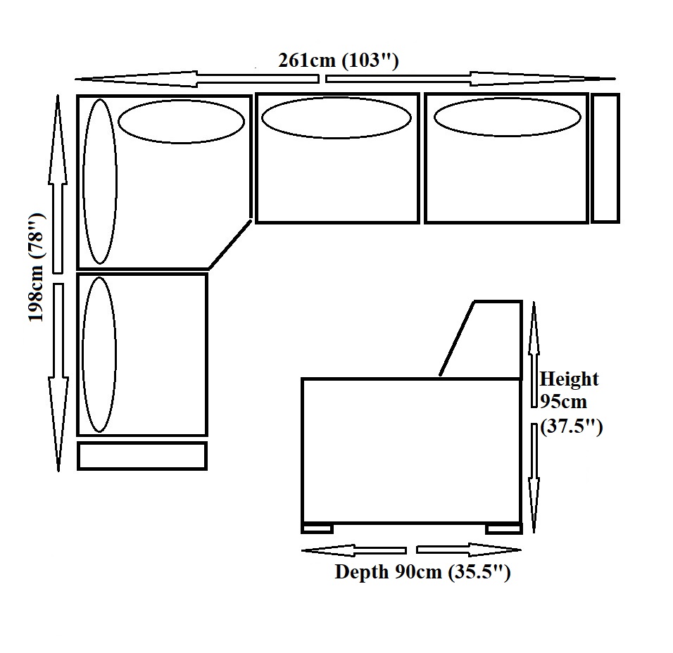 • Footstool – L102cm x W64 x H36cm (L40″ x W25″ x H14″)