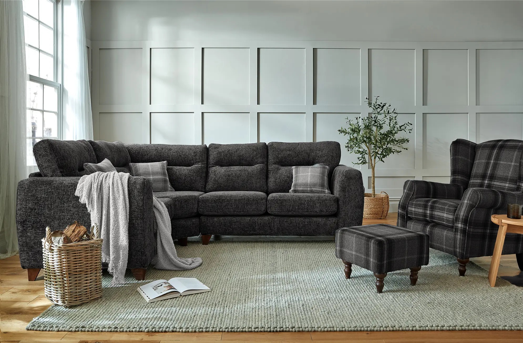 Shown here in a 1 Seater – Wedge Corner – 2 Seater configuration and upholstered in Daytona Coal fabric, the Lisburn is fully customizable to suit your space and style. Choose from a wide selection of fabrics, colours, and layouts to create a sofa that’s uniquely yours. Whether you’re seeking timeless sophistication or a warm, inviting vibe, the Lisburn delivers a bold, beautiful statement.