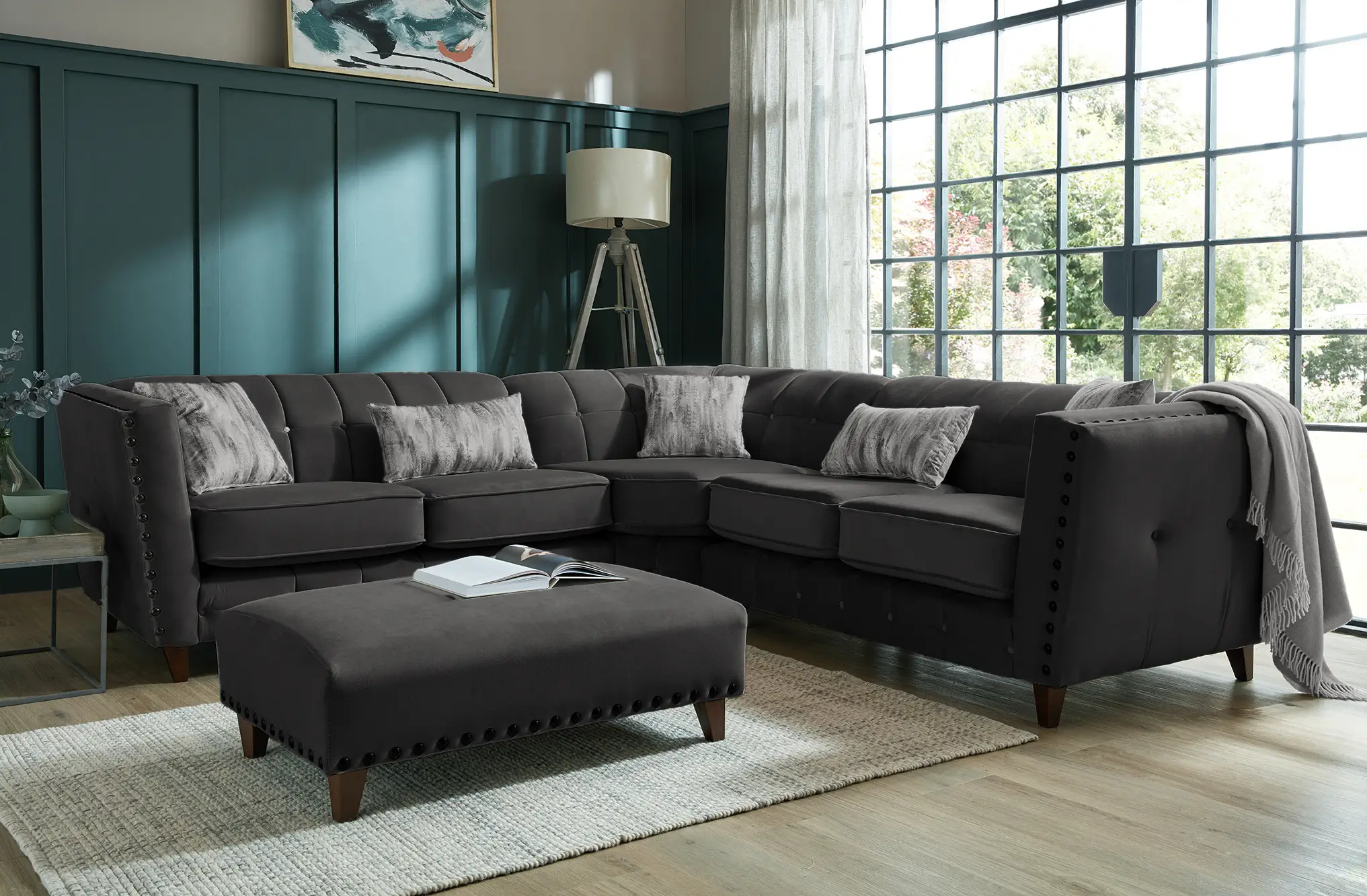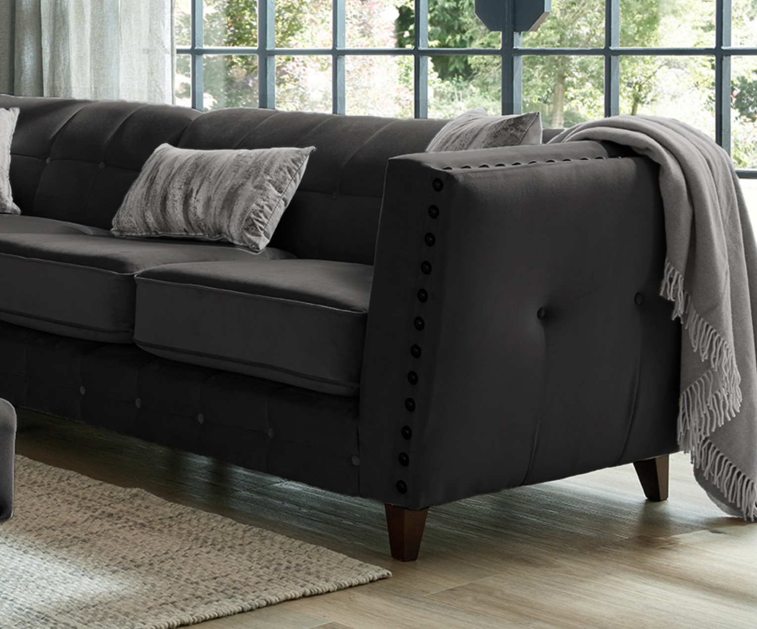 Whether you’re looking to add a touch of elegance or create a warm, inviting atmosphere, the Nevada offers a seamless blend of form and function. Shown as a 2-Seater – Corner Wedge – 2 Seater and in Daytona Coal fabric showing style and opulence. You can customize your Nevada sofa by going for a preferred colour or size configuration, creating a piece that perfectly complements your home and personal style.