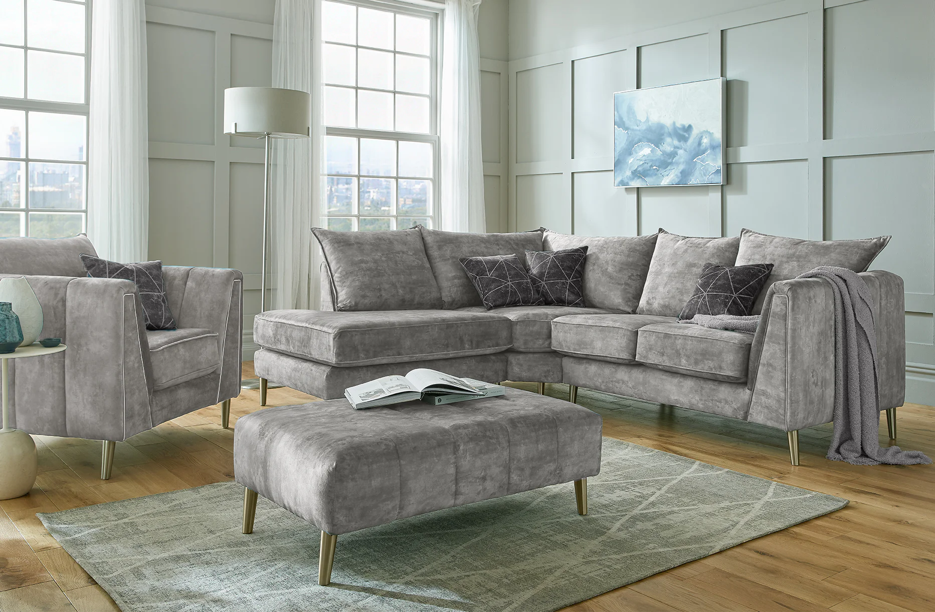 Pictured in a Chaise – Wedge Corner – 2 Seater configuration and shown in Whisper Silver fabric, the Vivo can be fully customized to suit your taste. Choose from a wide range of fabrics, colours, and layouts to create a look that reflects your personal style. Whether you’re looking to bring refined elegance to your space or craft a cosy, welcoming atmosphere, the Vivo makes a bold and beautiful statement.