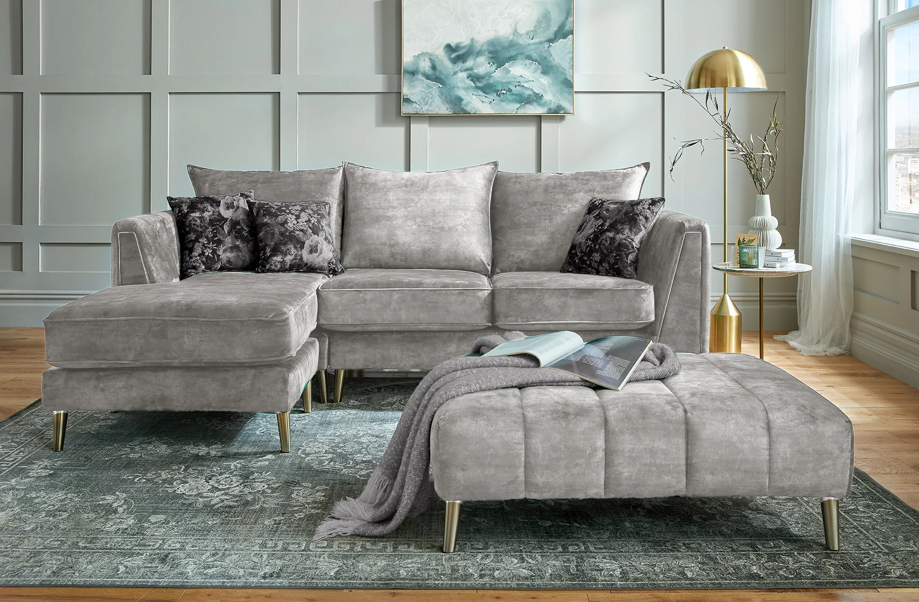 Pictured in a Chaise – 2 Seater configuration and shown in Whisper Silver fabric, the Vivo can be fully customized to suit your taste. Choose from a wide range of fabrics, colours, and layouts to create a look that reflects your personal style. Whether you’re looking to bring refined elegance to your space or craft a cosy, welcoming atmosphere, the Vivo makes a bold and beautiful statement.