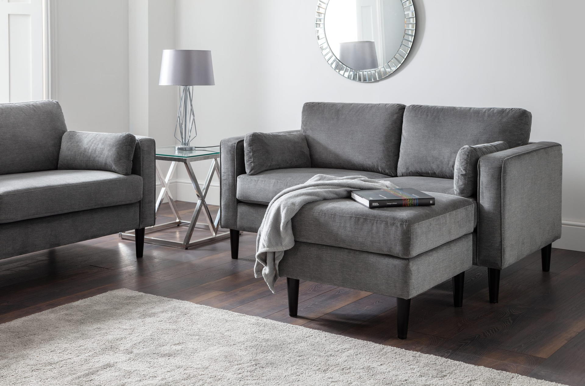 The Hayward Two-Seater Sofa will add a modern touch to any home. Finished in an elegant dark grey chenille fabric, this sofa features a padded frame allowing you to relax in style. Accompanied by two leg colour options – black or light oak, this armchair is the perfect design for a range of home decor. Part of the Hayward Upholstery Range from Julian Bowen.
