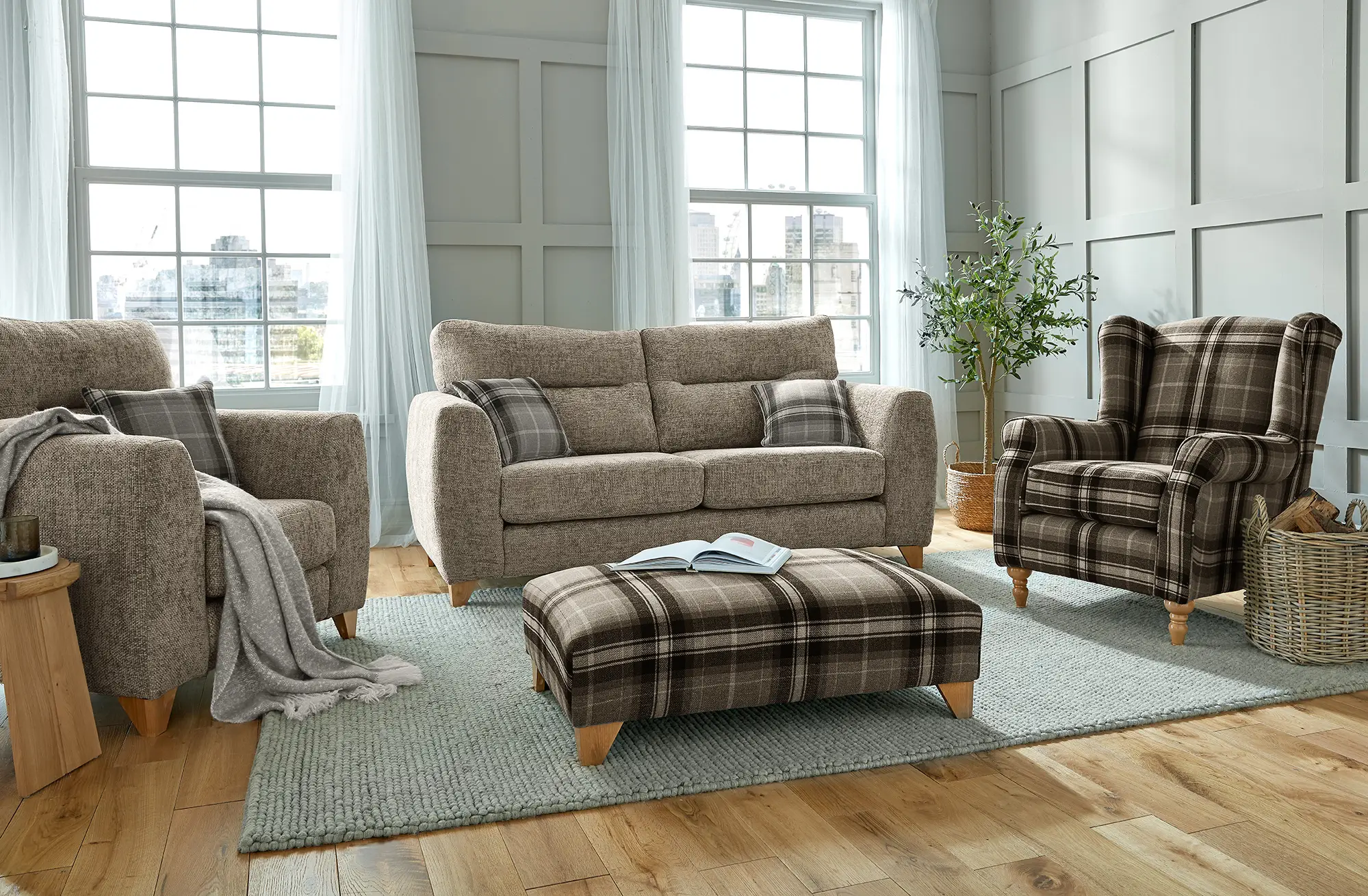 Shown here in a Armchair – 3 Seater – Wingback Chair – Footstool configuration and upholstered in Enzo Stone fabric, the Lisburn is fully customizable to suit your space and style. Choose from a wide selection of fabrics, colours, and layouts to create a sofa that’s uniquely yours. Whether you’re seeking timeless sophistication or a warm, inviting vibe, the Lisburn delivers a bold, beautiful statement.