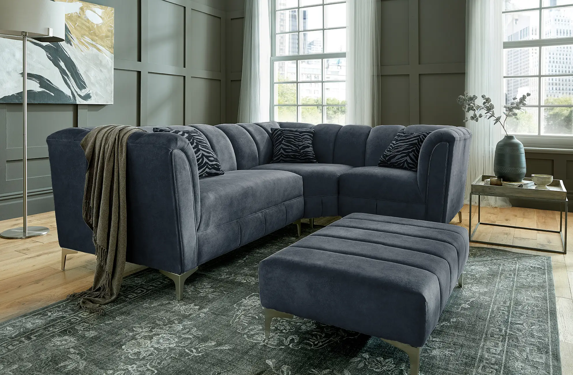 Shown in photo as a 1 Seater- Wedge – 2 Seater and fabric in Palladium Graphite but if you wish to tailor your Miami sofa to suit your personal style by choosing from a range of colours and configurations. Whether you’re aiming to enhance your space with elegance or create a cosy, welcoming ambiance, the Miami is the perfect statement piece.