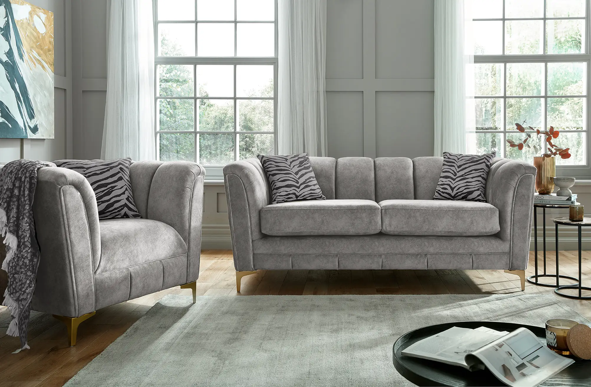 Shown in photo as an Armchair + 3 Seater and fabric in Whisper Silver but if you wish to tailor your Miami sofa to suit your personal style by choosing from a range of colours and configurations. Whether you’re aiming to enhance your space with elegance or create a cosy, welcoming ambiance, the Miami is the perfect statement piece.