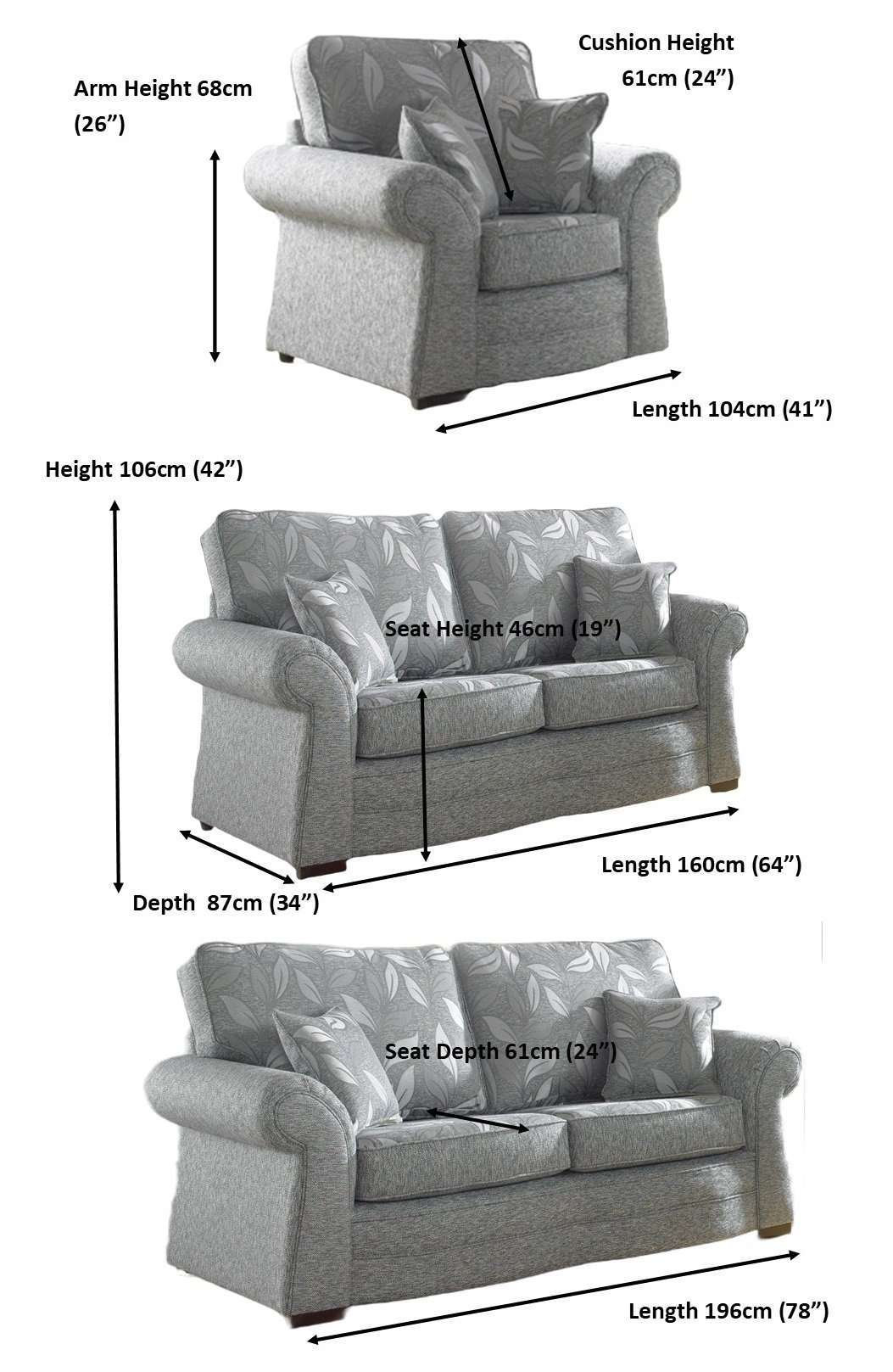 | Sofa Combination | 3 Seater + 2 Seater + Armchair, 3 Seater + 2 Armchairs, 3 Seater + 2 Seater, 2 Seater + 2 Armchairs, 3 Seater + Armchair, 2 Seater + Armchair, 2 x 2 Seater, 3 Seater, 2 Seater, Armchair |