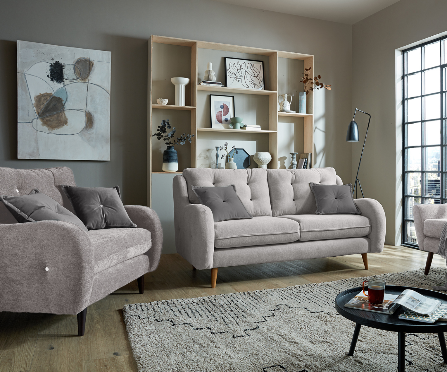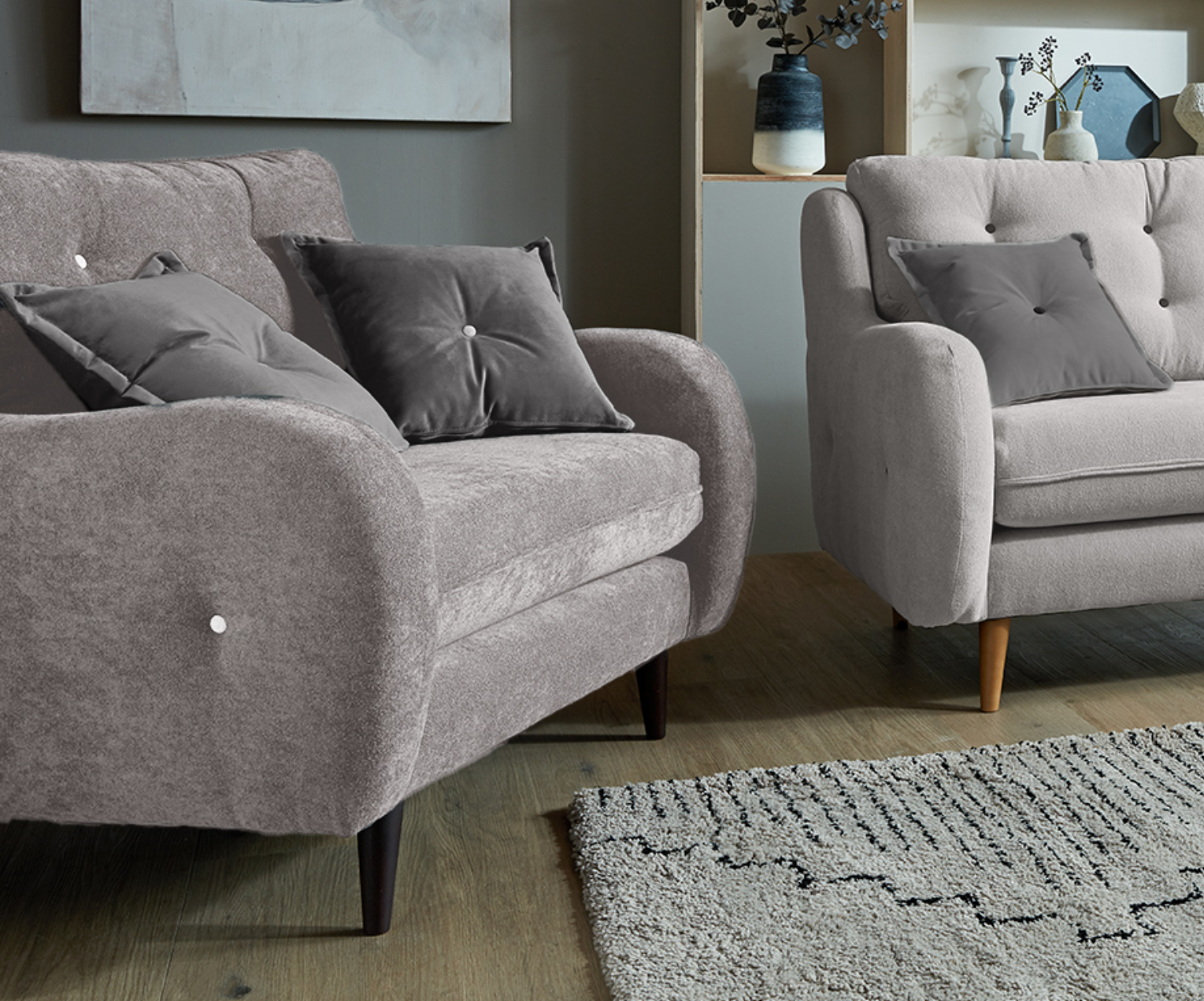 Pictured in a 3 –Seater – Snuggle Chair – Footstool configuration and shown in Whisper Silverfabrics, the Vivo can be fully customized to suit your taste. Choose from a wide range of fabrics, colours, and layouts to create a look that reflects your personal style. Whether you’re looking to bring refined elegance to your space or craft a cosy, welcoming atmosphere, the Vivo makes a bold and beautiful statement.
