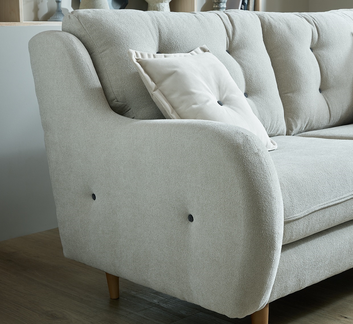 Carefully crafted with sleek lines and exquisite attention to detail, this sofa has a subtle and sophisticated look, with the addition of solid wooden feet for an added touch of contemporary style and elegance.