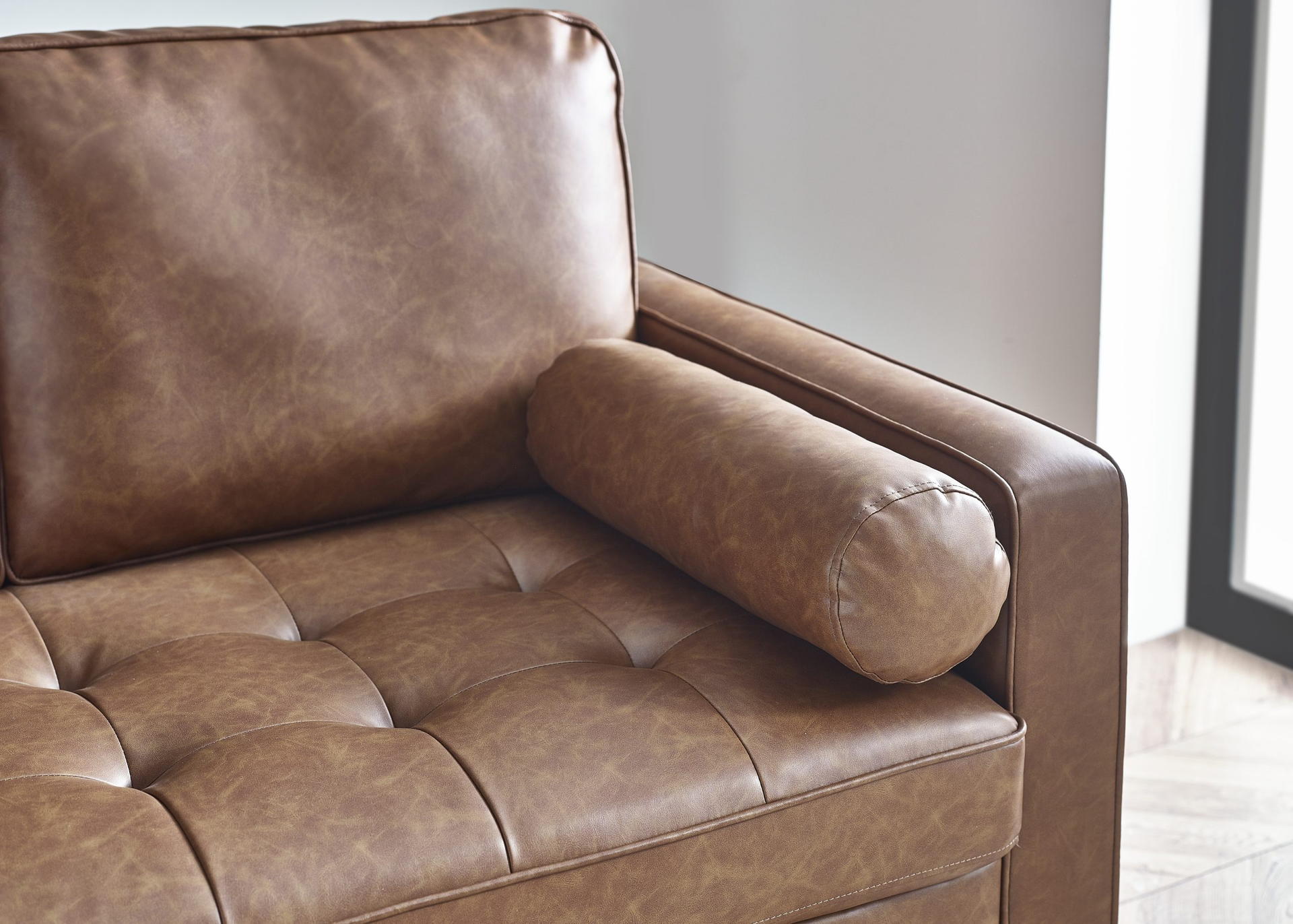 Crafted from sumptuous brown faux leather for a touch of luxury