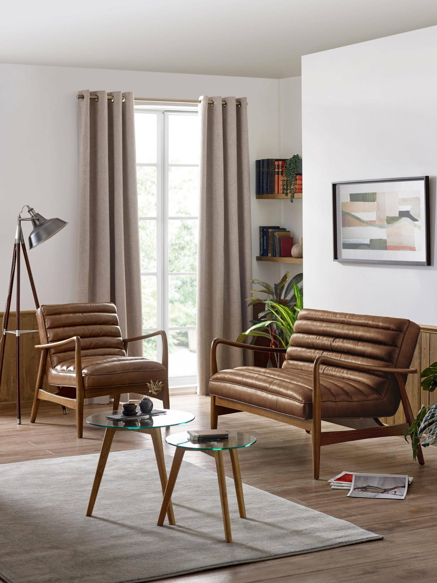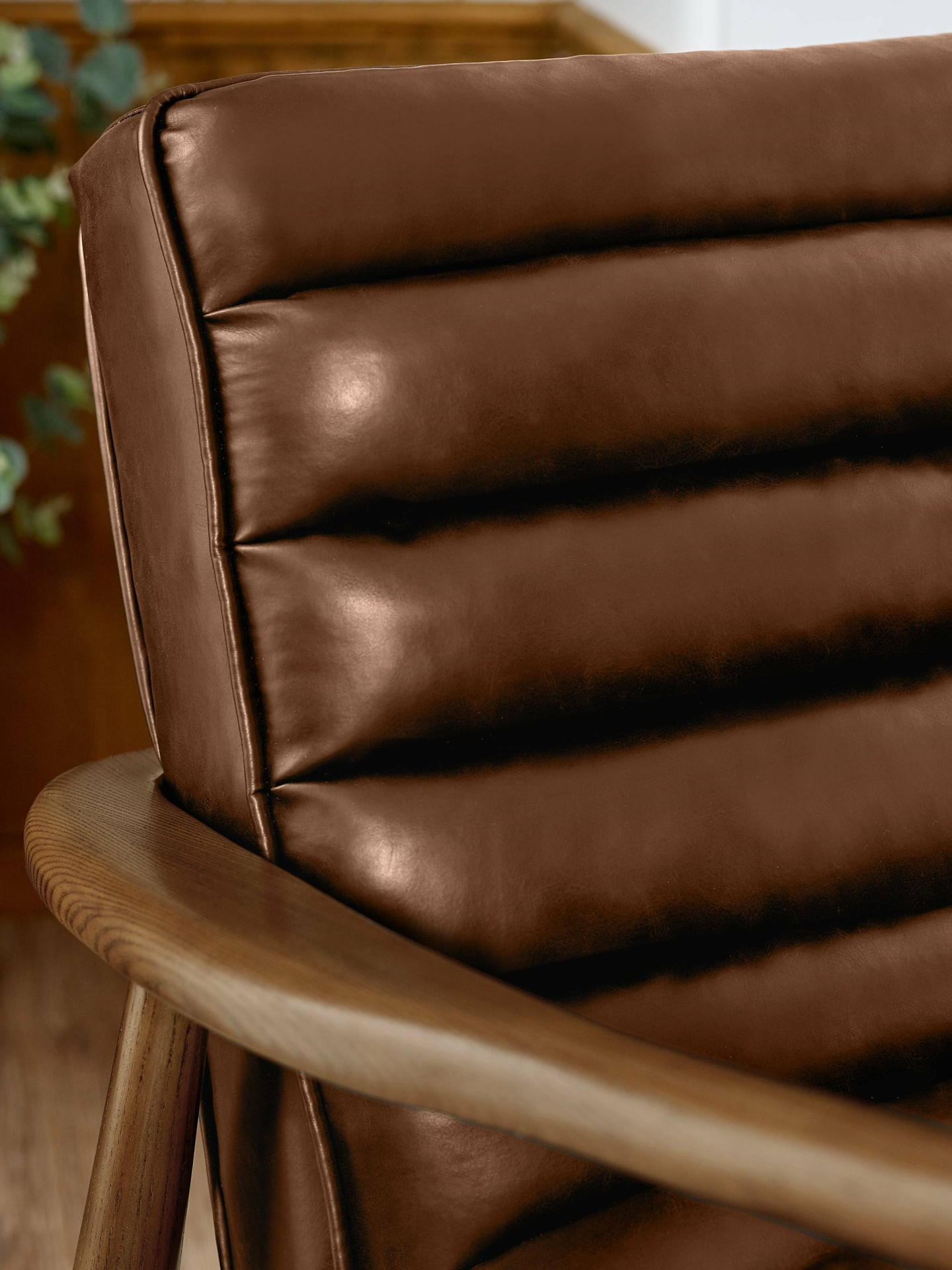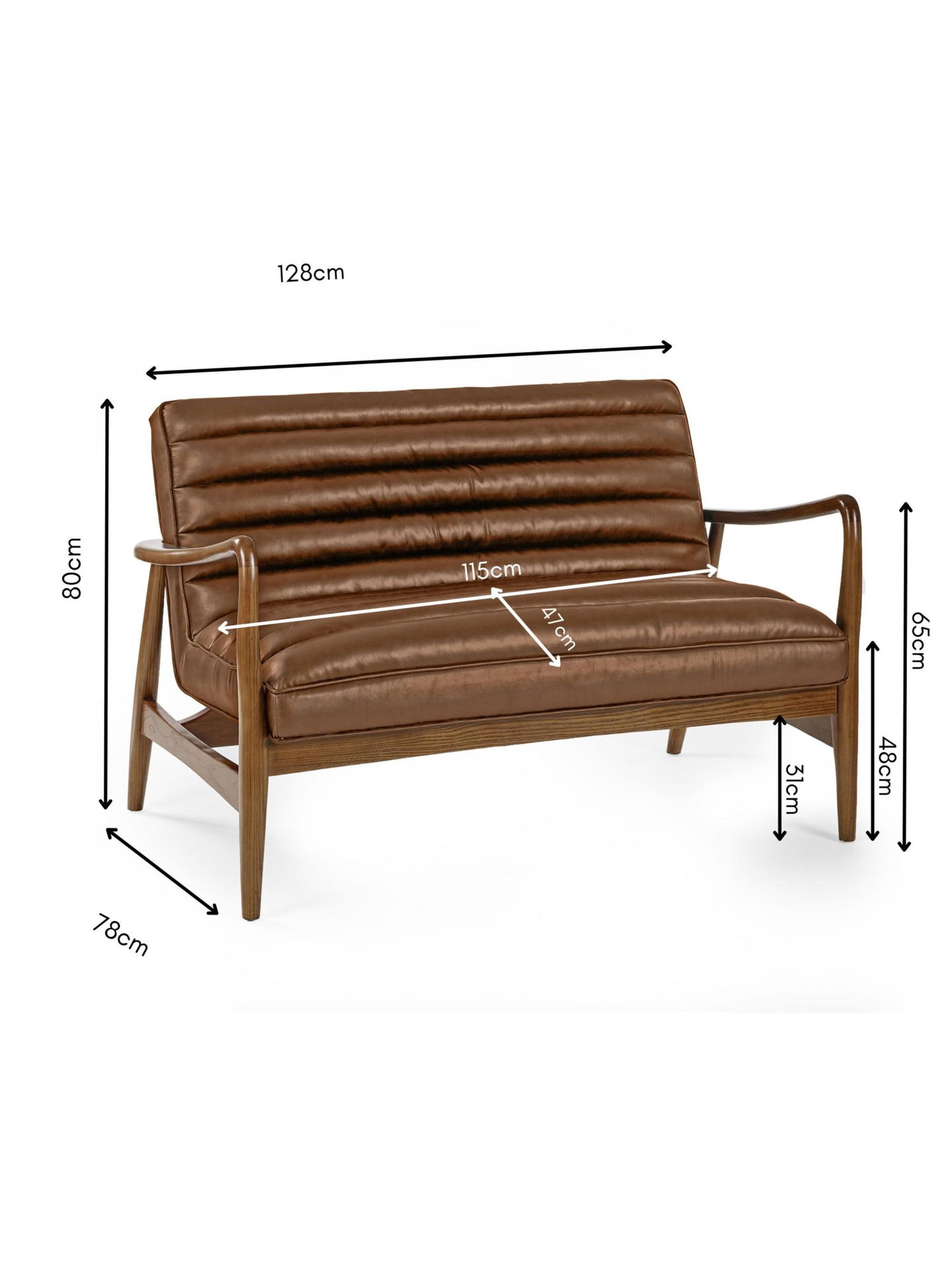 Elevate your living space with the Marshall 2-Seater Sofa in Vintage Brown, a perfect blend of style and comfort. Built on a solid oak frame, it offers both durability and timeless appeal. The ribbed cushioned seat and smooth brown faux leather upholstery add a hint of retro sophistication, making it a versatile and eye-catching addition to any home.