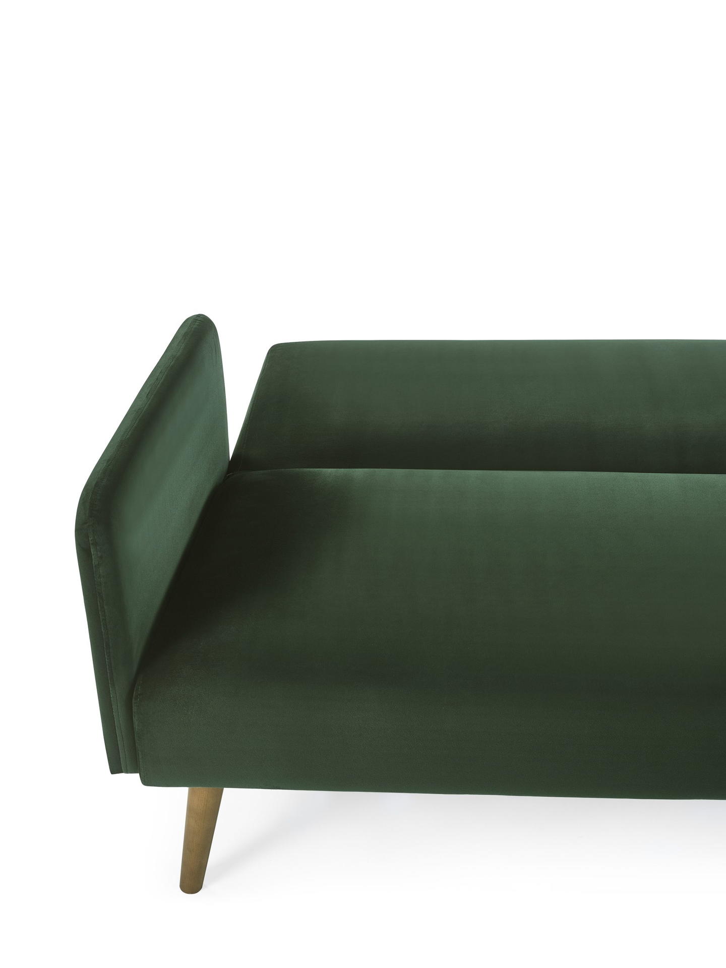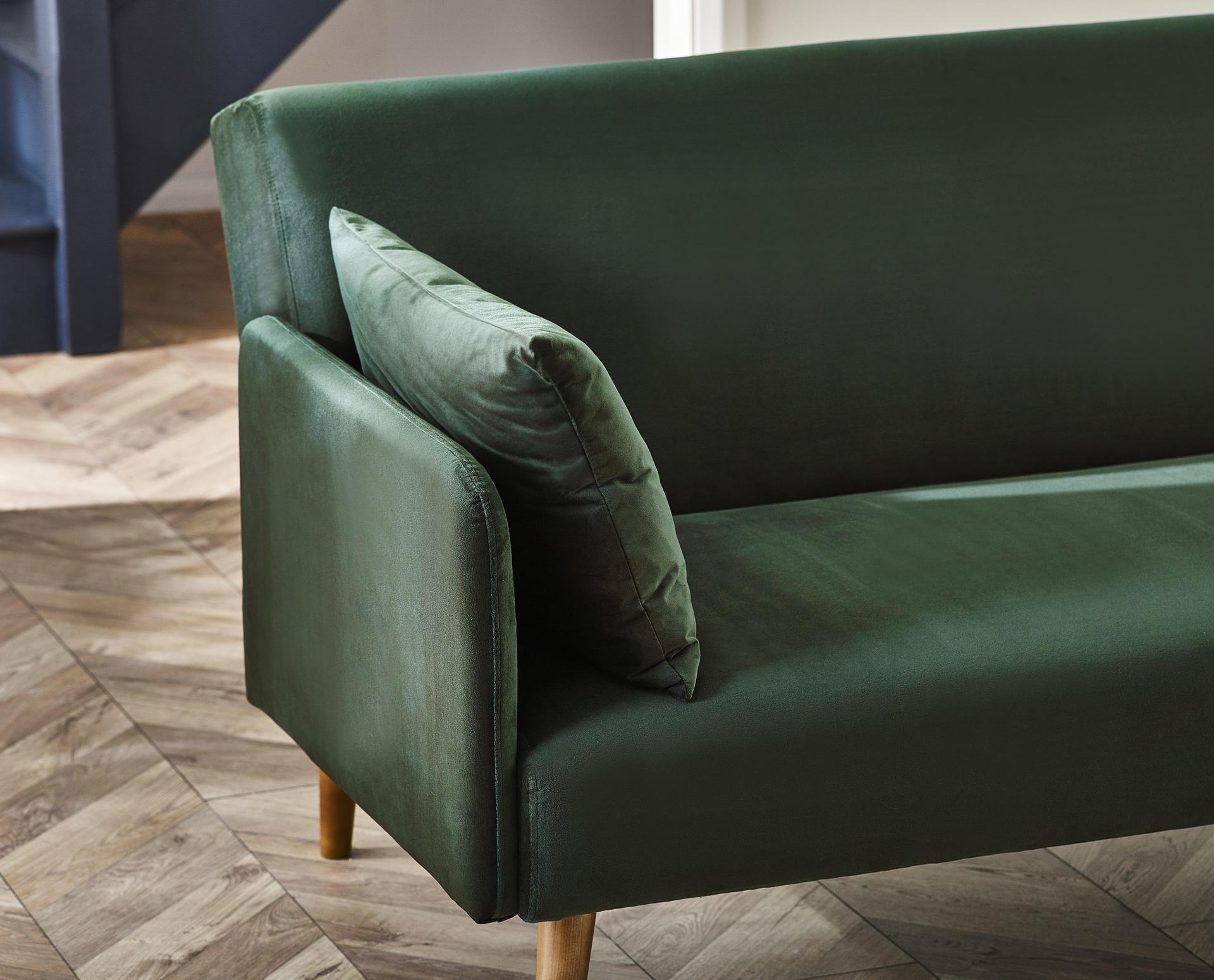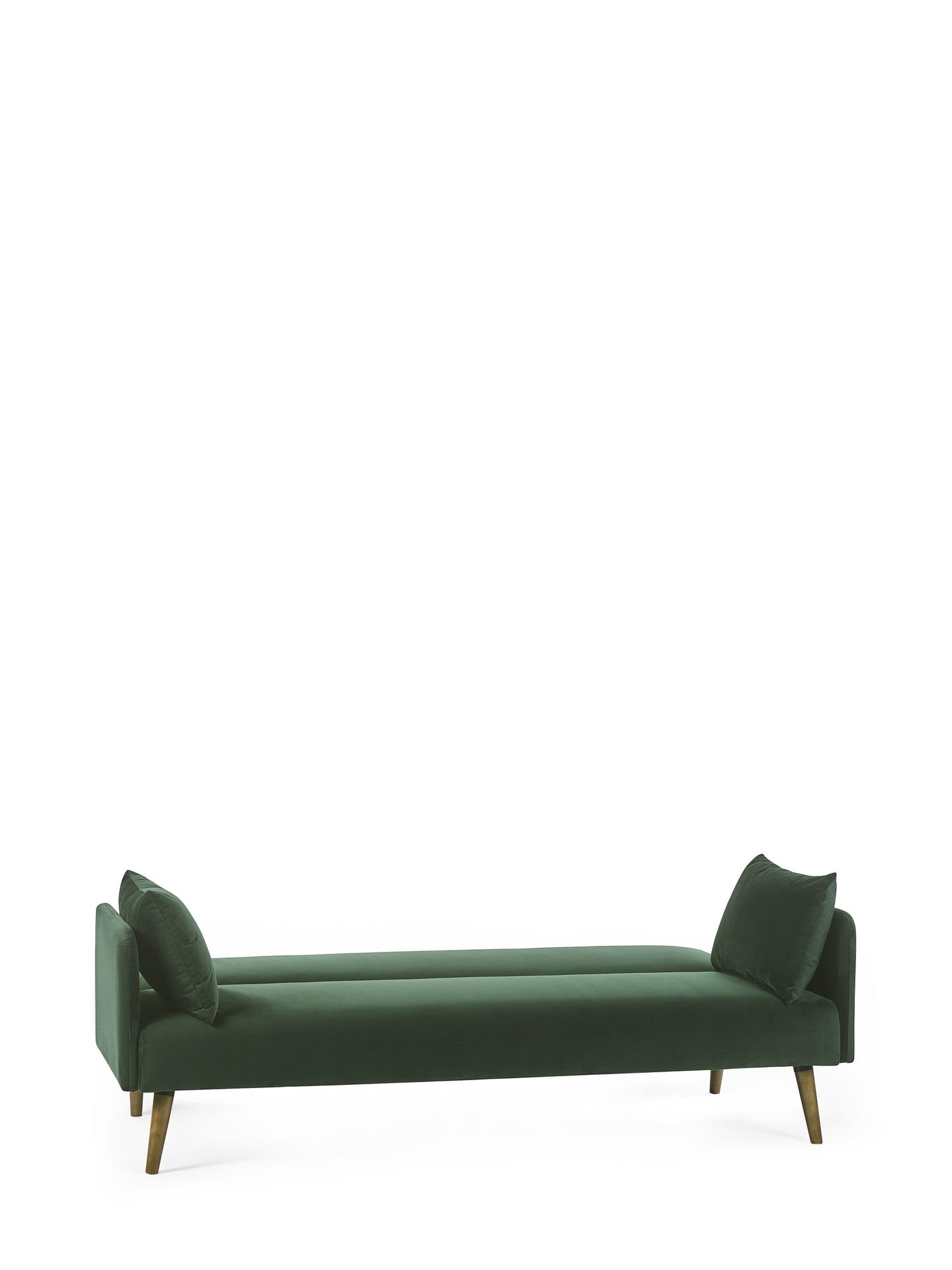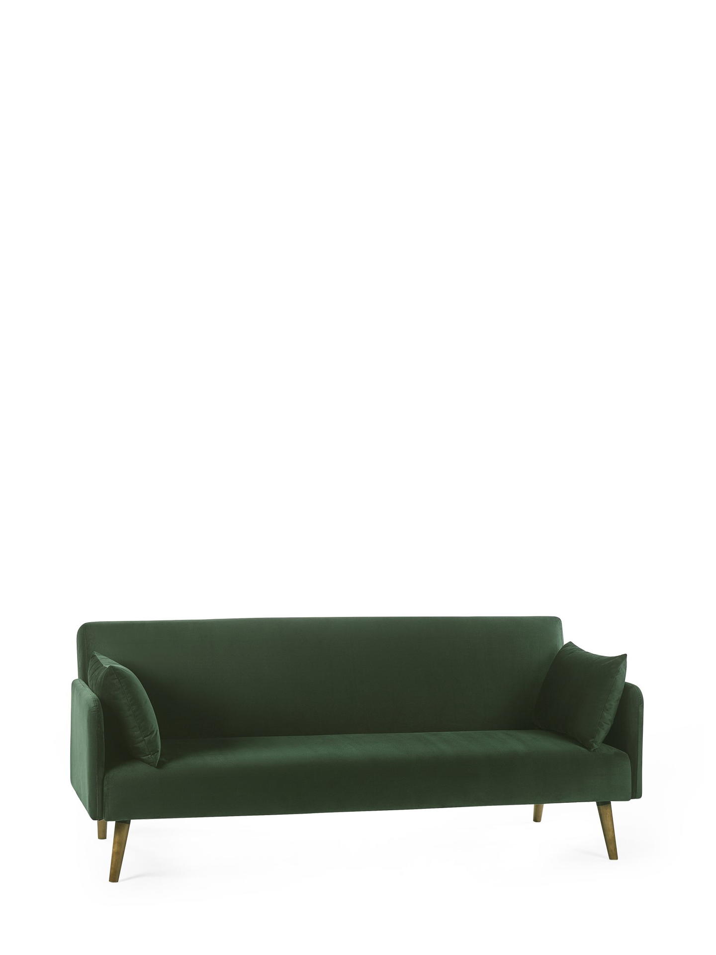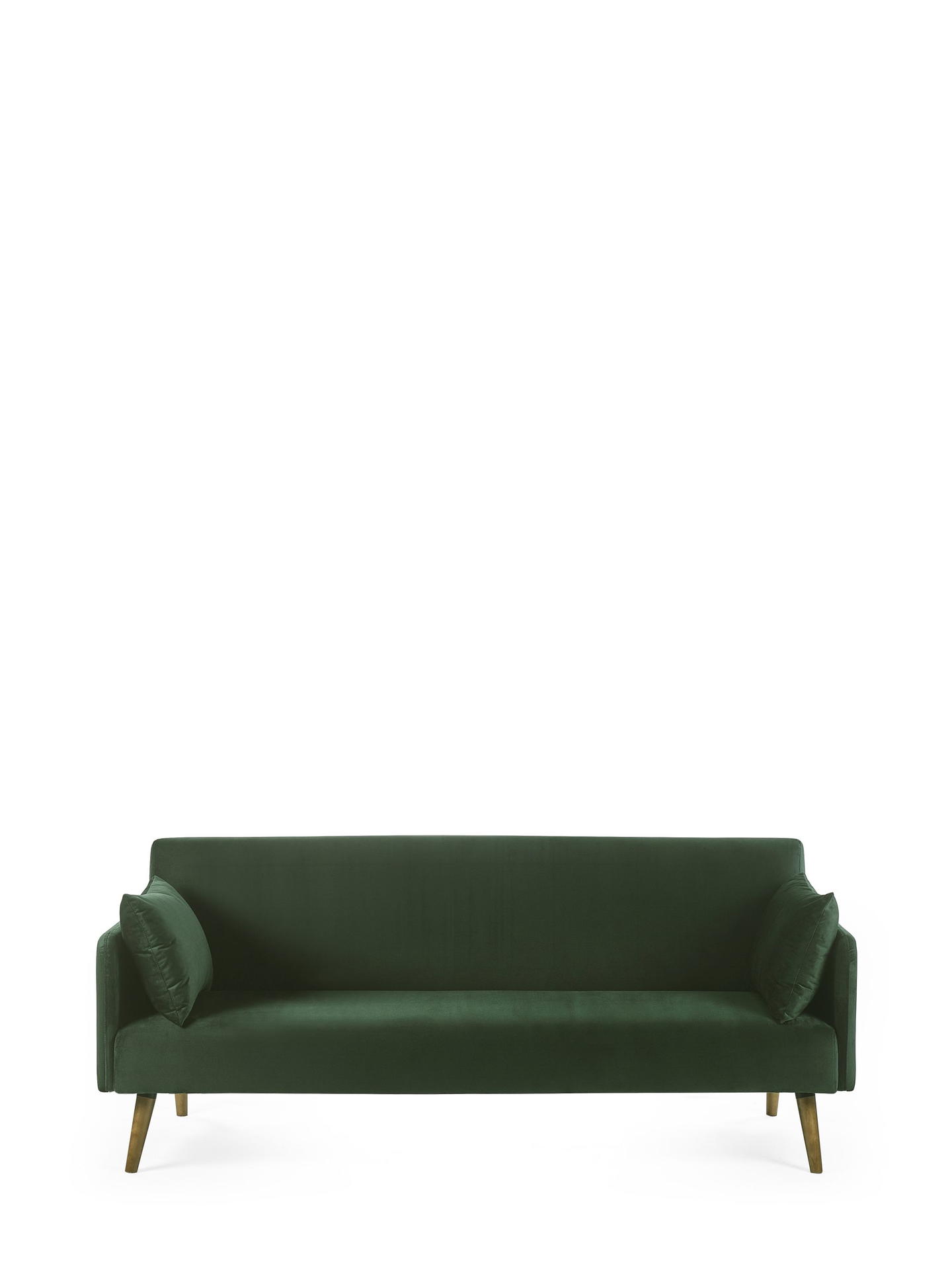 Elevate your space with the Andi Sofa Bed in Dark Green—a perfect mix of retro style and modern elegance, bringing both comfort and versatility to your home. Wrapped in a rich, dark green fabric, this piece adds a bold touch to any decor. With a simple fold-out design, it quickly transforms into a cosy bed, ideal for overnight guests. Two matching pillows are included for extra comfort and style. Supported by pale wood-effect legs, it brings warmth and sophistication, making it an ideal choice for compact or multipurpose rooms.