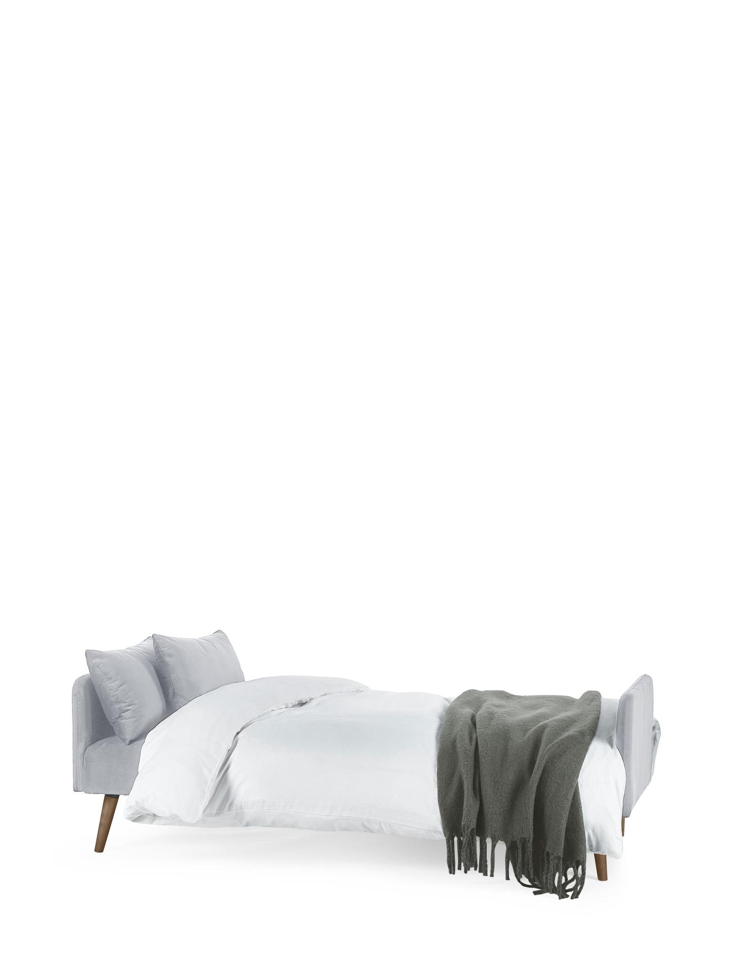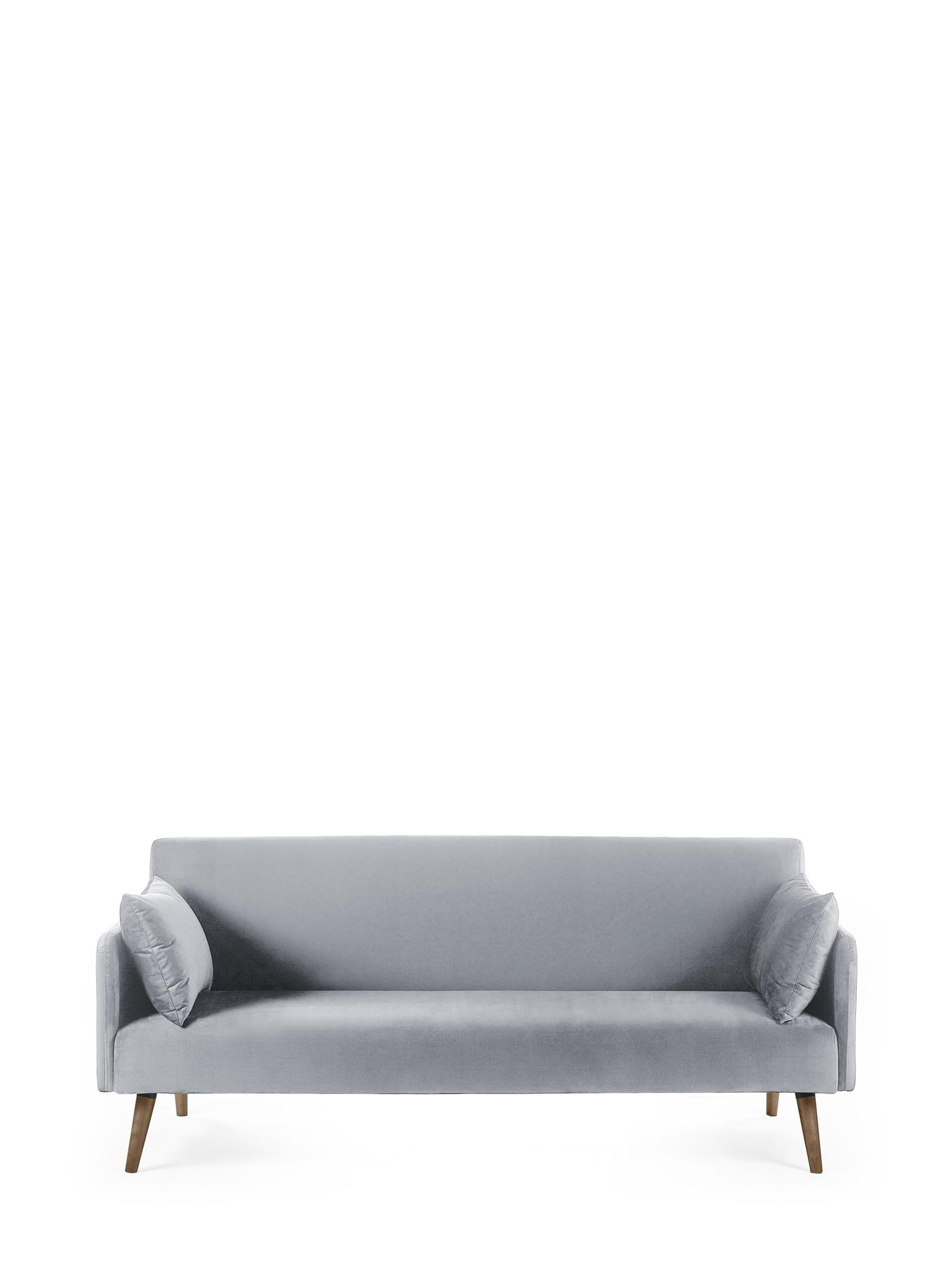 Discover the Andi Sofa Bed in Grey—a perfect blend of retro charm and contemporary style, bringing both comfort and versatility to your space. Upholstered in sleek grey fabric, this piece complements any decor and effortlessly folds out into a cosy bed, making it ideal for hosting overnight guests. Two matching pillows are included to enhance comfort and complete the look. With its pale wood-effect legs, it exudes warmth and sophistication, making it the perfect addition to compact or multifunctional rooms.