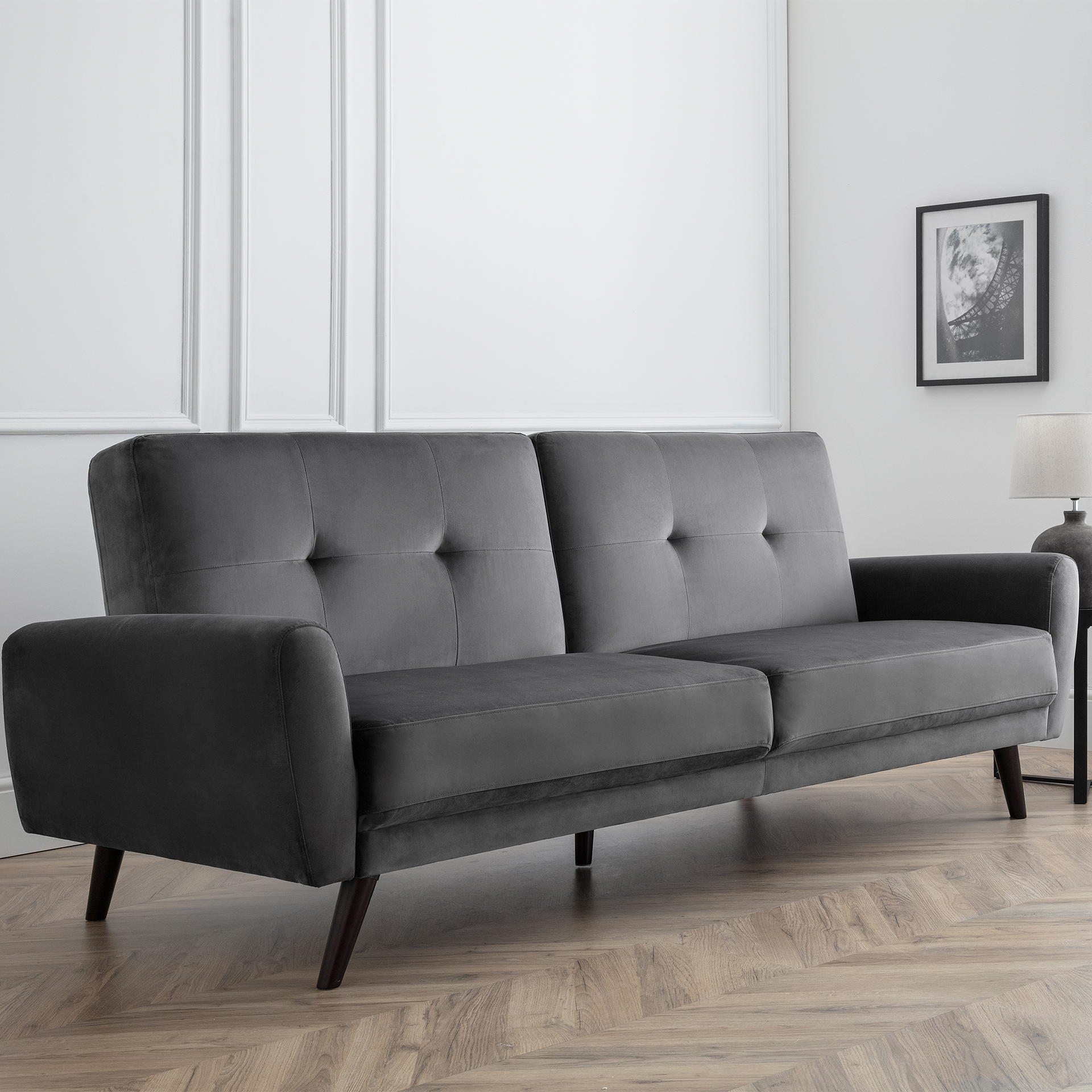 The Monza Sofabed is a stylish , highly functional piece with retro Scandinavian design influences. It is impeccably tailored in a smart, dark grey velvet fabric. Monza has a seat that is deeper than most similarly sized sofas, and is consequently incredibly comfortable. The Sofabed’s split back folds down easily to form a large, comfortable sleeping surface for two adults. Its clean lines and slick design make it a real focal point for any modern living space. Part of the wider Monza upholstery range from Julian Bowen.