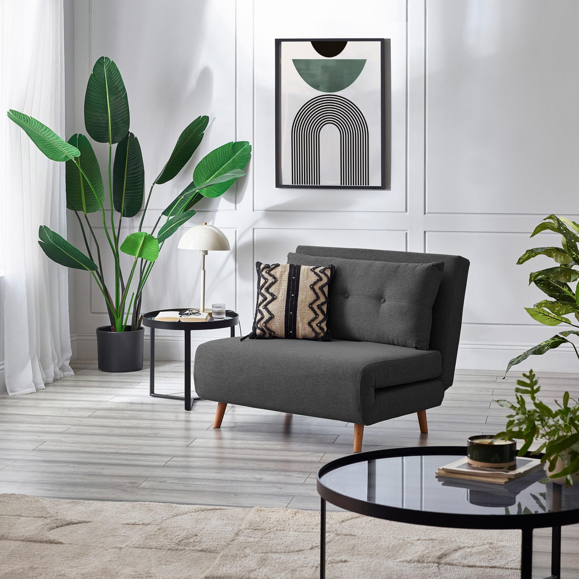 The Rowan Single Sofabed in Mid-Grey combines chic design with everyday functionality. Upholstered in a stylish mid-grey fabric, it’s supported by wooden-effect legs that bring a touch of natural charm. This versatile piece comes with a button-tufted matching pillow for extra comfort and easily transforms into a single bed for guests. Light and easy to move, it’s perfect for rearranging or adapting to different spaces. Simple assembly is required, making it the perfect solution for adding both style and practicality to your home.