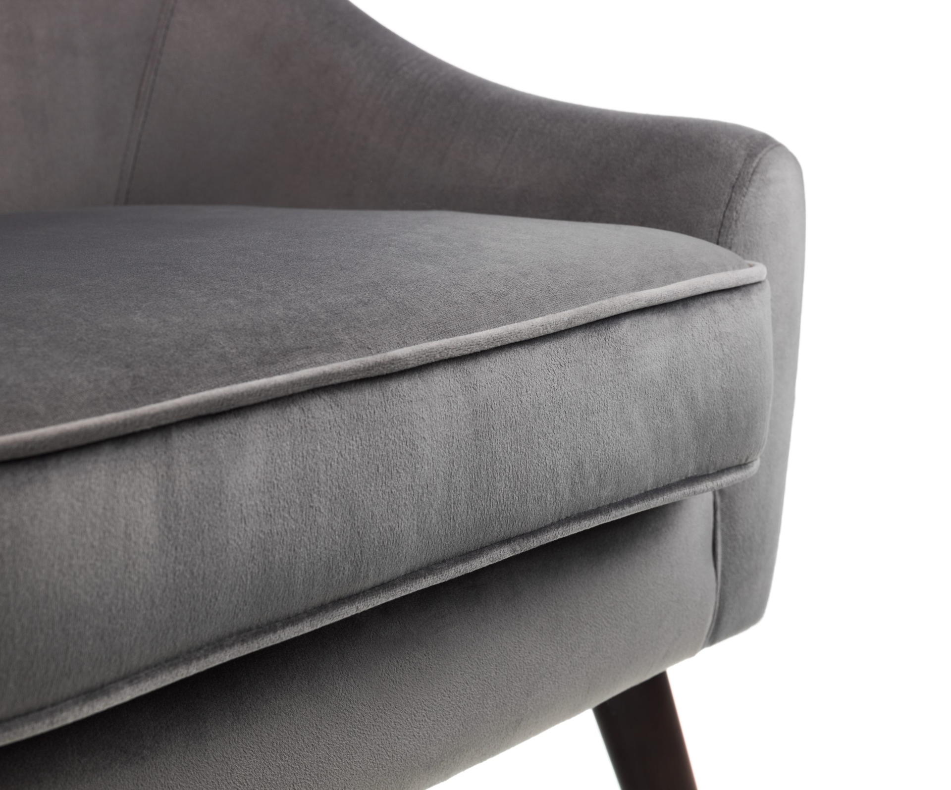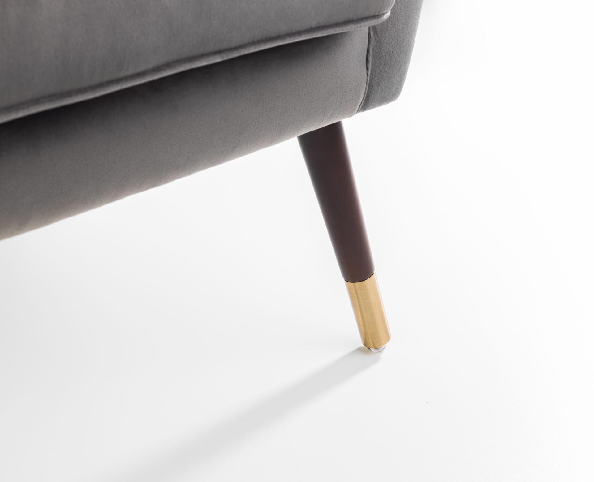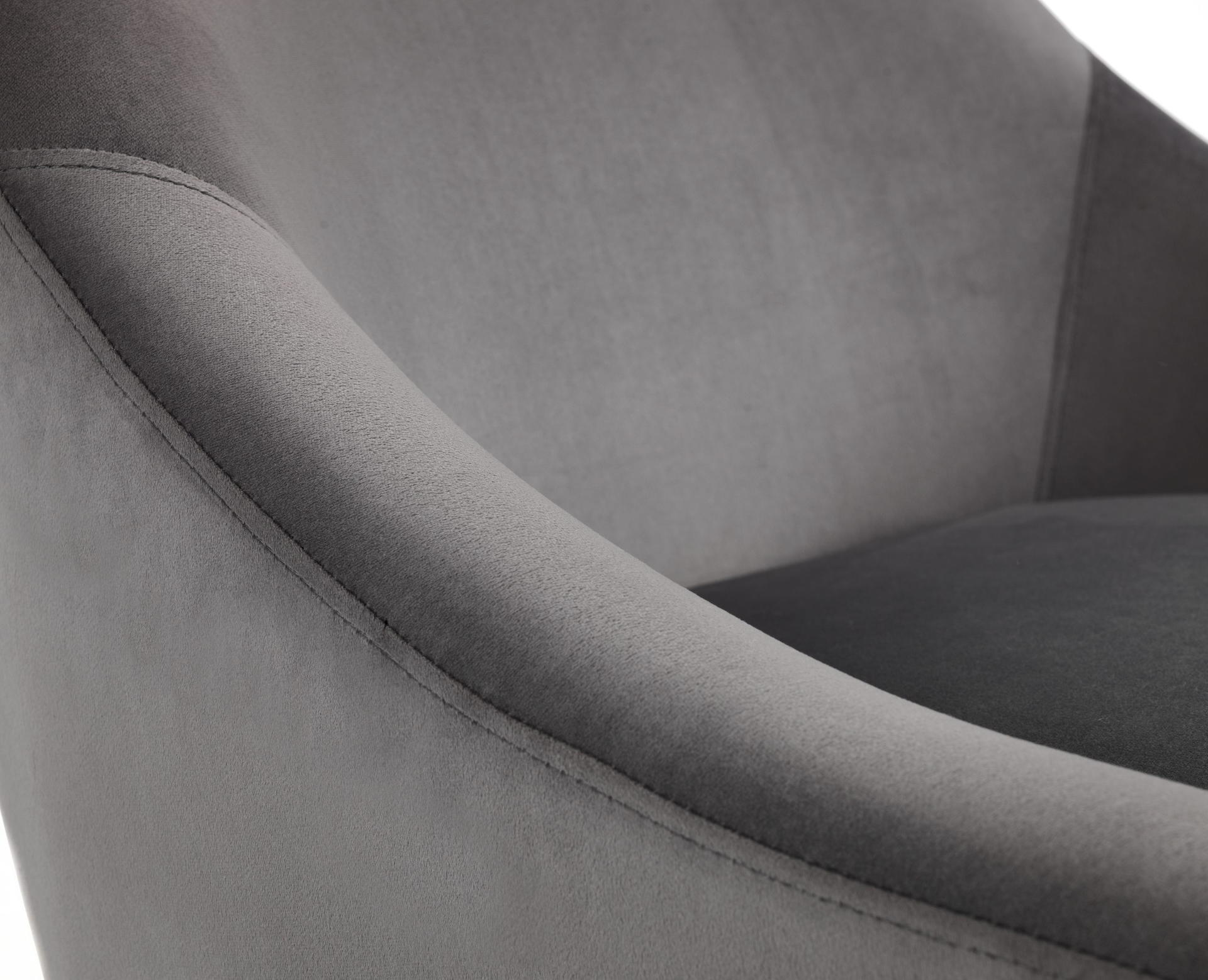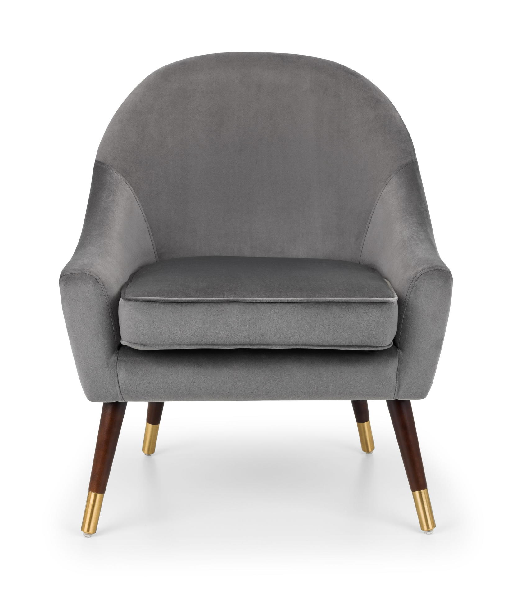 Our Elliot armchair combines high quality design with luxurious materials. Featuring beautifully curved arms and back upholstered in a chic grey velvet, and oak legs tipped with timeless gold – this piece is likely to make any area look classy and chic, whilst keeping you comfortable.