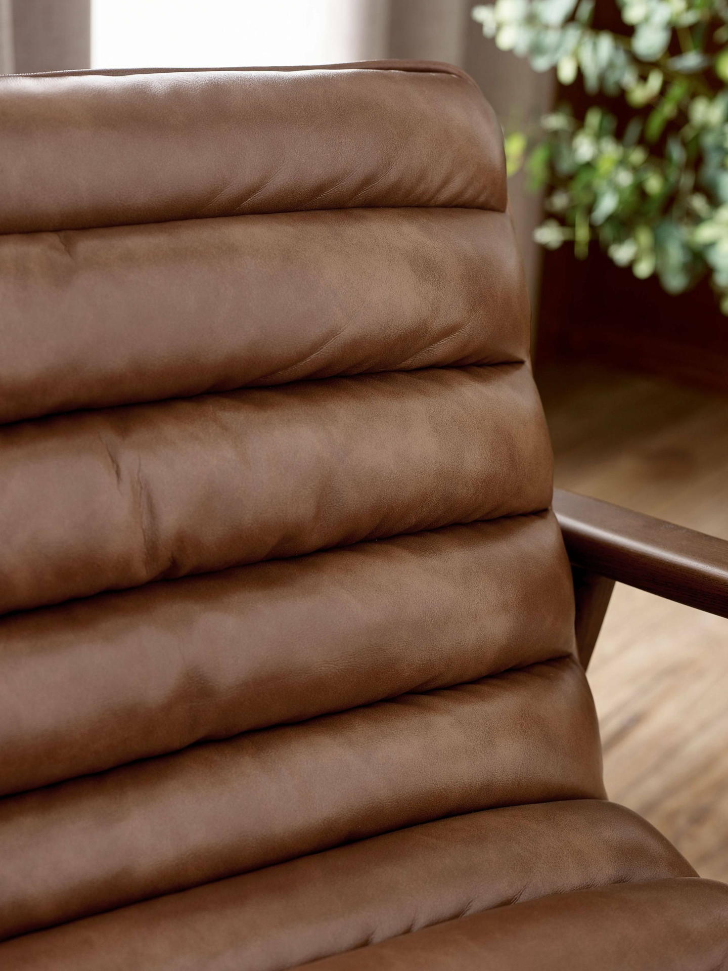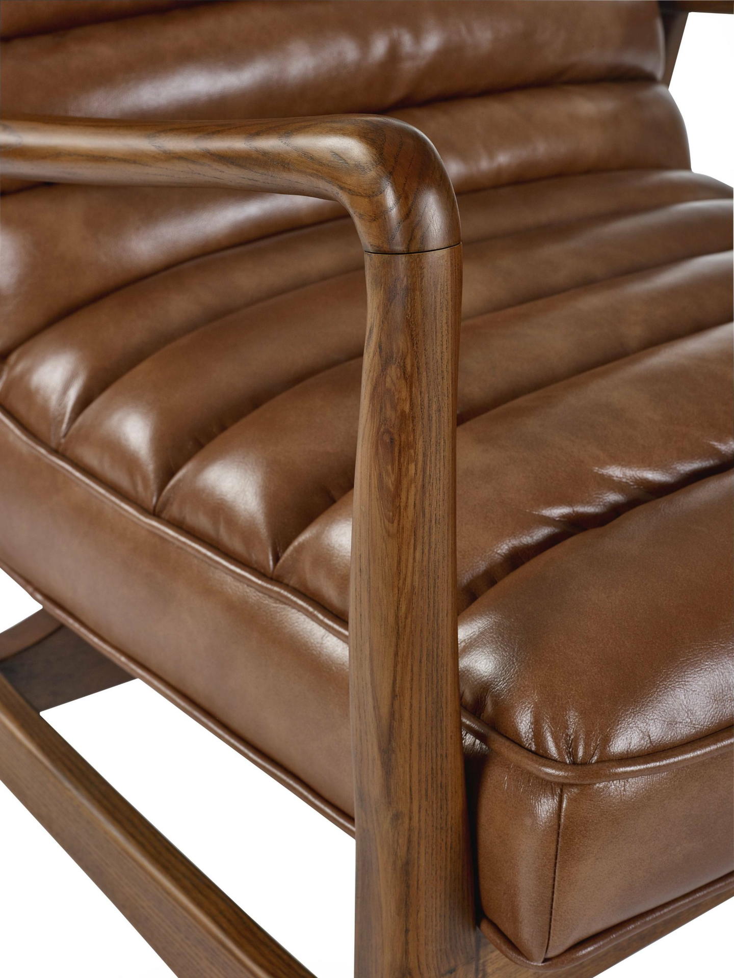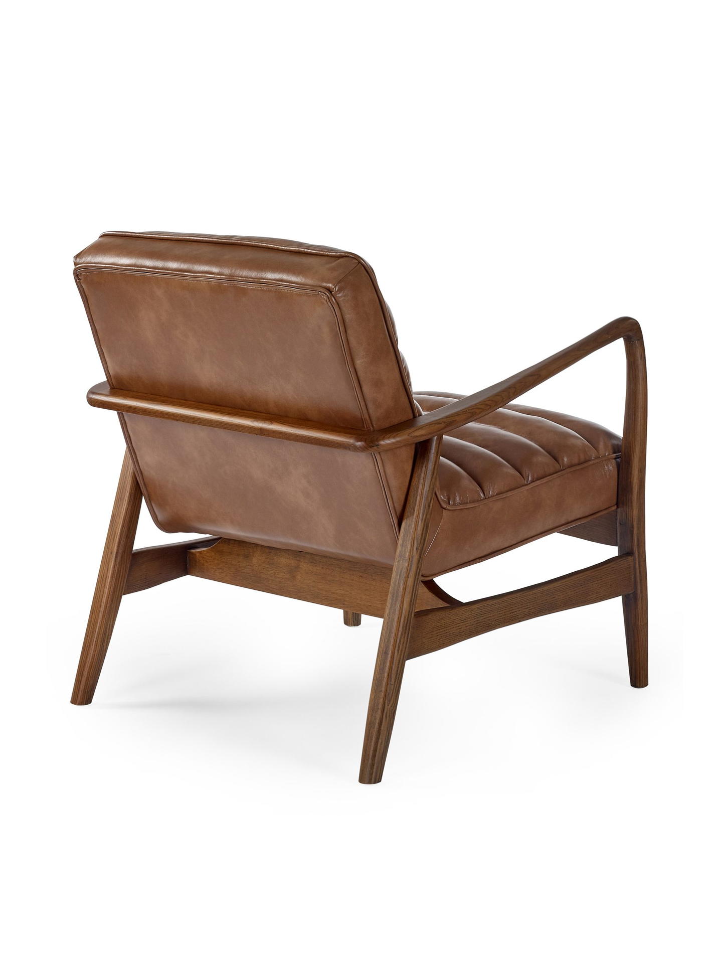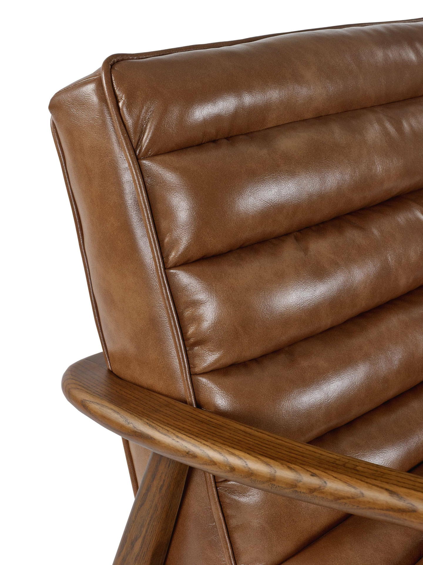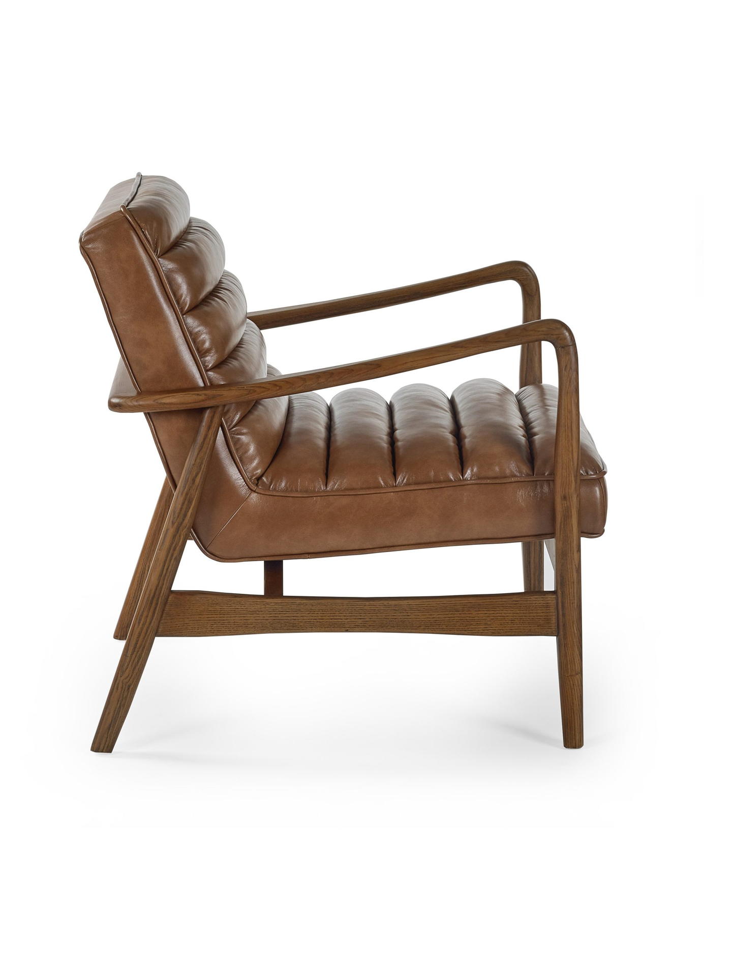 Bring timeless charm to your space with the Marshall Accent Chair in Brown. Crafted with a solid wood frame that showcases natural beauty, it pairs durability with sleek design. The ribbed cushioned seat, upholstered in smooth vintage brown faux leather, offers exceptional comfort and a retro-inspired look. Whether enhancing a cosy corner or anchoring your decor, it makes an inviting and stylish addition to any room.