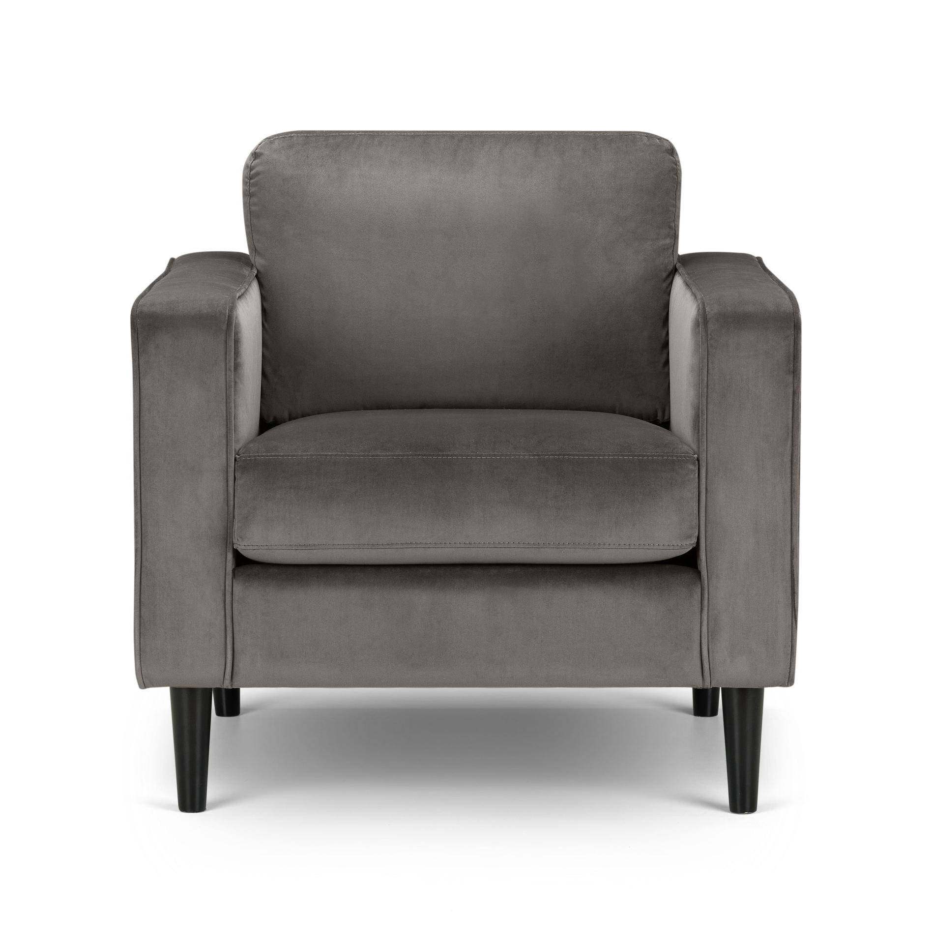 The Hayward Armchair will add a modern touch to any home. Finished in an elegant and luxurious deep pile grey velvet fabric, this armchair features a padded frame allowing you to relax in style. Accompanied by two leg colour options – black or light oak, this armchair is the perfect design for a range of home decor. Part of the Hayward Upholstery Range from Julian Bowen.