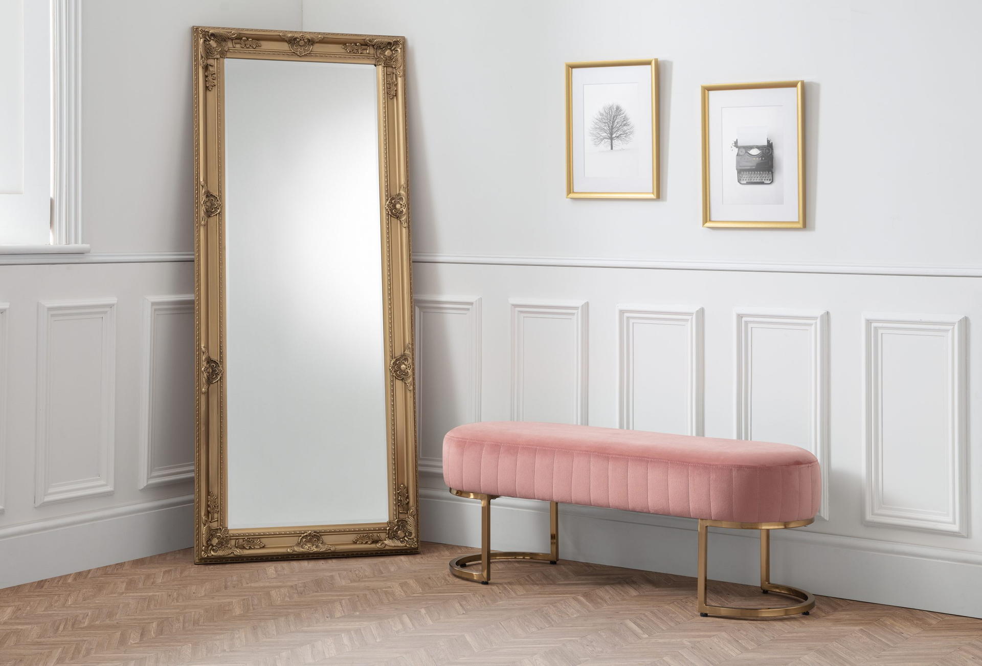 Designed in a luxury velvet, our Harrogate bench features an elegant, unique design that fits beautifully amongst a large range of interior décor styles. The contrast of the slick gold legs make this piece versatile, yet classy. Whether placed in the bedroom, or part of the hallway, this piece is sure to be a showstopper in any home.